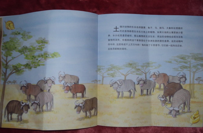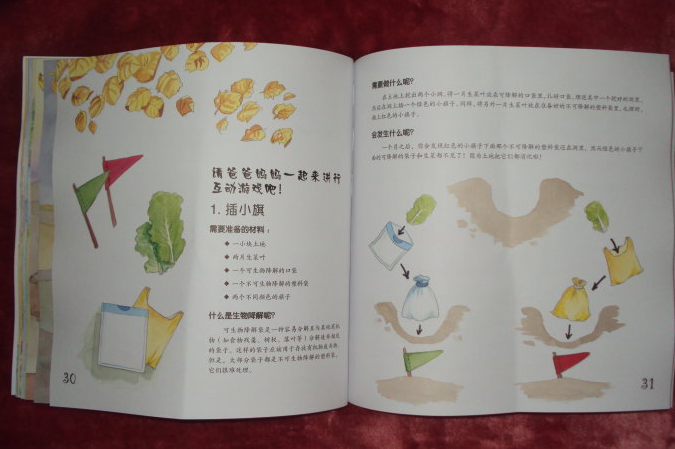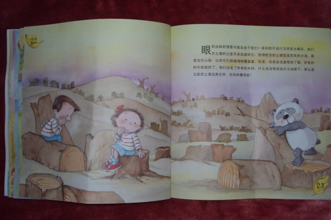 感谢@宝宝地带网@中央广播电视大学出版社,感谢你们提供的阅读机会。 最近这段时间,“雾霾”席卷中华大地,因此而咳嗽甚至支气管发生炎症的老人和孩子到处都是,这种现象让国人开始正视我们的生存的环境,大家都意识到如果再不下大力气来整治环境,保护我们的地球母亲,那么我们的子孙后代将来真的没有可以呼吸的新鲜空气了。这套《地球环保小卫士》可以让我们的孩子从小就知道保护环境的重要性,让我们的孩子可以有环保理念,我收到的这一本《大地身体要健康》主要讲述的是要保护我们脚下的土壤,我们才会有吃的食物,动物们才可以生存,土壤对于我们的生活有很重要的作用哦! ![]() 环保是关爱自然母亲最好的方式,封面上的这句话说得真好,只有我们人类都树立起环保理念,用实际行动来关爱我们的地球母亲,才能为自己为地球营造一个良好的生存环境。那就让我们跟随熊猫银银的脚步一起,来一次地球环保之旅吧。 ![]() 第一个画面,是小朋友们在沙滩上玩,可是太阳公公把沙滩晒得真烫脚啊!天实在是太热了,还没有一点遮阳的地方。如果整个地球都是这样的话,那该是多么恐怖的事情啊!而土壤是我们地球生物赖以生存的根基,当土壤肥沃的时候,植物才能茁壮生长哦,地球上才会有美丽的花儿和可爱的草儿呀!儿子看着书,跟我说:“妈妈,是不是有了土壤,大象才能生活呀?”我告诉他是这样的,土壤给大象提供了食物,大象吃了食物才会生存下去的。 ![]() ![]() ![]() 但是,当土壤缺少营养、干涸还有贫瘠的时候,就会形成什么都不能生长的沙漠,这里介绍了非洲纳米比亚沙漠的红色沙丘,你看这里什么都不能生长,完全是一片沉寂的样子。同时土壤对于动物的生长也很重要,因为动物们吃的食物都是生长在土壤里的植物哦。书中介绍了生活在非洲东部的塞伦盖蒂的牛羚,到了干旱季节,它们就要迁徙去寻找新鲜的草吃。 ![]() ![]() 熊猫银银现在坐在一台拖拉机里,这是美国爱荷华州的一个农场里的玉米地里,人类就是靠吃土壤里生长出来的植物来生存的。儿子这个时候说:“妈妈,哪些是植物呢?是不是玉米啊花生啊这些是植物啊?”我家儿子还是会动脑筋思考的,我说是的,花生啊玉米啊都是植物,还有小麦啊稻谷啊这些我们经常吃的东西都是土壤里生长出来的植物,所以我们要保护我们的土壤,这样土壤里才能长出来植物让我们吃,我们才可以生活下去的。而且土壤还可以保护动物们,比如有很多动物是生活在地下的洞里的,你看这些猫鼬是不是很可爱,它们就是生活在洞穴里的哦。 ![]() ![]() 还有,我们人类也会利用土壤来搭建房子呢,比如非洲的马塞族用沙土、黏土、稻草和植物根茎来搭建他们的村落外墙哦。当然了,土壤保护我们,也需要我们的照顾,土壤也需要远离炎热和寒冷还有狂风,这些弗罗里达州的红树林的根茎就非常强壮的抓住土壤来抵挡狂风暴雨。 ![]() ![]() 植物们都在生长着,他们依托土壤成长,同时也在保护土壤,可是我们人类在使用土地资源的时候,却并没有好好保护我们的土壤。不过地球上也有很多自然形成的沙漠,比如非洲的撒哈拉大沙漠就是非常的壮观呢!儿子这个时候说:“妈妈,大沙漠里好玩吗?”嗯,这个怎么说呢?沙漠里一点儿也不好玩啊,又热又荒无人烟的,我觉得真的不好玩的。 ![]() ![]() 这是怎么回事呢?儿子说妈妈这些树都是光头强砍倒的吗?哈哈,儿子知道光头强是个坏蛋,老是要砍树,这样的场景真的是让人触目惊心啊!还有地球上有的地方虽然很肥沃,但是土壤被过度开发了,如果不注意保护土壤,让土壤有充足的时间来休息和恢复的话,土壤也会变得贫瘠的呀! ![]() 还有就是城市中的污染物排放,随地乱扔垃圾,土壤也会被破坏的,所以我们应该从小事做起,来保护我们的土壤和我们的环境呀!最后,熊猫银银说该走了,因为它得去菜园看一看它种的菜了,可以吃上自己亲手种的菜,这是一件多么美妙的事情呀!儿子也说他最喜欢的蔬菜就是西红柿呢,他经常要吃的就是西红柿炒鸡蛋,真的是很好吃的菜啊! ![]() ![]() 书后面还有互动小实验呢。第一个是插小旗,可以让孩子来了解一下什么是生物降解哦,很有趣的小实验,还有一个是诚实的颜色,这两个游戏的材料都很好找,我准备周末的时候带着孩子一起来做这些实验,让他可以更直观地感受到保护环境保护我们的地球母亲的重要哦! ![]() ![]() 本作品未经作者许可不得转载,转载请征求作者意见。擅自转载使用,将保留追究其法律责任的权利! 个性签名