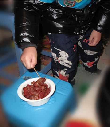 ![]() 前几天罐爸参加公司的团拜会去了,就我和罐罐两个在家,可我实在不想做饭,我不吃没什么,可罐罐必须要吃的呀。看看冰箱想起了上次在卖年货那里买的培根,这可是罐罐的最爱呀。 ![]() 先给大家看看小吃货是直接守在人家试吃点那里,守着吃呢,真是拉都拉不走,惭愧呀。(一个手用手机拍的,一个手又拉住他,不要靠得太近,怕油溅出来了,所以看起来图片有点黑。) ![]() 很多人都在问价格,得知要50一包,都觉得有点小贵,可看到咱家吃货这么喜欢的份上,怎么也要买一包了。平时超市是没有卖的 ![]() 这就是传说中的培根 ![]() 本来是要先拿出来自然解冻的,可我是晚上临时拿出来的,都没看说明,没办法,罐罐又着急想马上的就吃,只好自己想办法了,就直接用刀砍了一小部分,然后去微波炉解冻的 ![]() 解冻后就把一片片的肉撕开,这样烤时才好直接放进去的 ![]() 我是用的电饼档,很方便的,加热就可以用了。 因为培根本来是比较长根的那种,我是直接撕成一半,这样方便点,不占地方,同时也可以多烤几片的 ![]() 看看,刚刚烤好了一小碗,罐罐已经是迫不及待的来偷吃了 ![]() 还是来张烤好的图吧 怎样,看起来很不错吧 ![]() 这下可把小吃货美死了 吃得兴奋时还连连在扭屁股呢,嗨起来了 ![]() ![]() 当然,光是那点培根是不够的,再来点鱼排,鱼丸,蟹肉棒什么的 ![]() 这些就可以一起放进去,可以把电饼档上面的盖子放下来烤,直到有‘兹’的声音,就差不多好了 ![]() 看看,这个鱼排也是罐罐喜欢的 我觉得好像很多小朋友都喜欢这个鱼排的,因为我有几次去接罐罐的哥哥放学,在那里就见很多小朋友在吃这个鱼排,只是那外面买的都是用油直接炸的,个人觉得那种反复这样炸的肯定没有自己家做的好,原因我就不说了,你懂的 ![]() 怎样,这就是我们一天的简单晚餐,觉得不错的,请多多支持