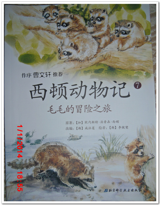 绘本特色:在西顿的故事中,让孩子体验动物世界中的感情 阅读心得:喜欢阅读西顿的动物记,总感觉西顿的动物记才是真正的有关动物的书,书中的故事有的欢快、有的伤感、有的开心、有的、、、、但总感觉这些故事写得最为真实、感人! 《毛毛的冒险之旅》在读这本书时,我们母子跟随书中的主人公毛毛或喜、或忧、或悲,在看到毛毛任性、调皮不听妈妈的话时,真的感觉毛毛就好似自己身边的孩子,判逆心特别强。当毛毛不听妈妈的劝告自己留在上游结果被猎人捕到时,真为毛毛感到伤心和悲伤,也为毛毛的生命而提心吊胆。幸运的是毛毛被一位农场主收养了,且两位孩子都特别的宠爱它。可顽皮的毛毛终于自己太调皮,最终惹闹了农场主一家,农场主最后决定把它归还给带它来的那位猎人,就这样幸运的毛毛又一次进入了危险的境地。 到了猎人那里,毛毛被当成了猎狗捕猎的练习工具,但万幸的是在一次森林训练时,毛毛凭借着妈妈教给他的技能和本领逃回了森林,并凭着记忆找到了它的家,还有他的父母及兄弟姐妹,看到这里真为毛毛感到开心和幸福。 幸运的毛毛结婚生子了,毛毛当上了一位合格的爸爸,并且它把自己的冒险故事都讲给了自己的孩子。 这本书的结局是美好的,虽然故事中一波三折,但最终毛毛与父母团聚并有了自己的家庭,看到这样的结尾,真为毛毛感到高兴~