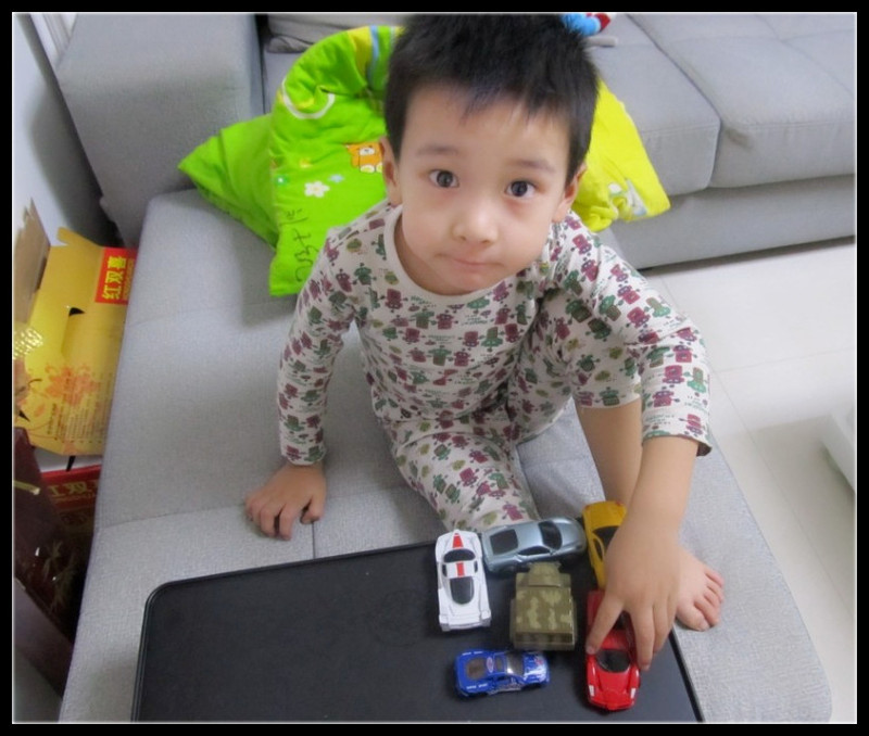 Aric玩了半个小时,自动关机,跑来找我要求看动画片,找了本书给他,让他自己看,我的电视剧还没结束呢。小家伙看完了书也不来烦我了,估计看出我是不会让电视的,再看看爸爸在用电脑,乖乖的玩起了玩具。当一家三口都忙完了,时间也指向了9点半,老公吆喝着该睡了,洗洗涮涮回到被窝听老公讲笑话和新闻,渐渐的进入了梦想。