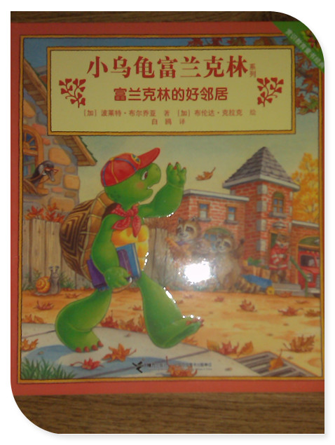 《富兰克林的好邻居》是小乌龟富兰克林系列中的一册。给谦讲这个故事的时候小家伙除了对富兰克林的画感兴趣外还喜欢富兰克林家中的一些细节,比如盛放富兰克林喜欢吃的饼干的罐子是小乌龟的造型,富兰克林吃饭的勺子把也有个小乌龟,孩子关注的地方还真是挺有意思的。