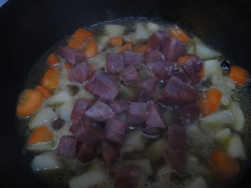 ![]() 这是我年后第一次在这里发帖,不是因为没有做菜,而且因为前几天生病了,我都没有做饭,老公做的,他不喜欢拍照片,所以一直没有来这里发帖。 ![]() 今天晚上,虽说是老公做菜,但是我看了一下,噢,原来是做东北乱炖呀,我一定要拍照片,这道菜我们以前做过,但是用的食材不一样,今天我们用的肉是从老家带过来的猪肉,宝宝的二姑春节的时候回老家了,正好他们邻居家里杀猪,所以他们家里就买了一些猪肉,给我们带来了有五斤左右,我想肯定会特别的好吃。 ![]() 首先准备菜,有土豆,胡萝卜,然后就是肉。 ![]() 调料准备了,香醋,老抽,葱花,料酒,盐。等 ![]() 先把土豆打皮,然后切成小块,洗干净,用水泡一下。 ![]() 胡萝卜打皮,切成小块,洗干净。 ![]() 然后把肉也切成小块。 ![]() 锅中放油,放入葱花,然后放入香醋,老抽,和料酒,加一点水,然后放入土豆块和胡萝卜块,炒一会,然后再放入肉块,加水,炖上四十分钟左右。就可以了。 ![]() 这道菜,宝宝也喜欢吃,主要宝宝喜欢吃肉和胡萝卜,胡萝卜中有大量的丰富的维生素,一定要炒一会,让胡萝卜充分吸收油的滋润。这样才能有大量的是营养素宝宝才能吃出健康。