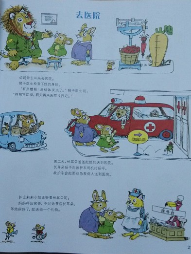 阅读日期:2月14日 参与人员:轩轩和妈妈 阅读绘本:《去医院》 绘本特色:扁桃体发炎需要切除吗? 适读年龄: 3岁以上 阅读心得 妈妈带兔子长耳朵去医院检查,狮子医生检查后说她的扁桃体发炎了,需要做手术把它切掉。第二天,长耳朵爸爸把妈妈和长耳朵送到医院,她看到救护车在忙着送急救病人,还礼貌地向救护车司机打招呼呢。护士正在等着长耳朵,妈妈送她到医院后就回家了,还答应等长耳朵病好了就送她一个礼物。 长耳朵来到了病房,看到邻床的已经被切除了扁桃体的罗杰狗正在大口吃冰激凌呢。护士帮长耳朵换好手术服,带到手术室,狮子医生帮长耳朵做了手术。长耳朵一觉醒来已经做好手术来到了病房,虽然手术后嗓子有点疼,不过可以吃冰激凌真好。这时,长耳朵看到妈妈也进了医院,以为妈妈是赶来看她出了什么事呢?其实是妈妈要生宝宝了,原来妈妈的礼物就是给长耳朵带来了一个可爱的小弟弟呢。 轩宝听完这个故事,好多问题,说以扁桃体轩宝是熟悉的,以前他因为喉咙痛去看医生时,就说过扁桃体发炎。所以他问我扁桃体发炎为什么要切掉呢?不是吃药就可以好吗?我以前就是吃药好的呀。我只好和他解释,动物和人的身体结构不一样,所以他们的扁桃体发炎必须切掉。宝又问,狗狗为什么刚做完手术就可以吃冰激凌呢?我说因为是小手术,而且恢复得快,所以才可以吃。宝接着问,做手术的时候为什么是睡一觉就做好了呢?切掉的时候不会痛吗?怎么睡得着?我告诉他因为在手术前医生会给长耳朵打麻醉药,打了麻醉药后就会睡着什么都不知道,也感觉不到痛,所以才会这样。 本作品未经作者许可不得转载,转载请征求作者意见。擅自转载使用,将保留追究其法律责任的权利! 个性签名