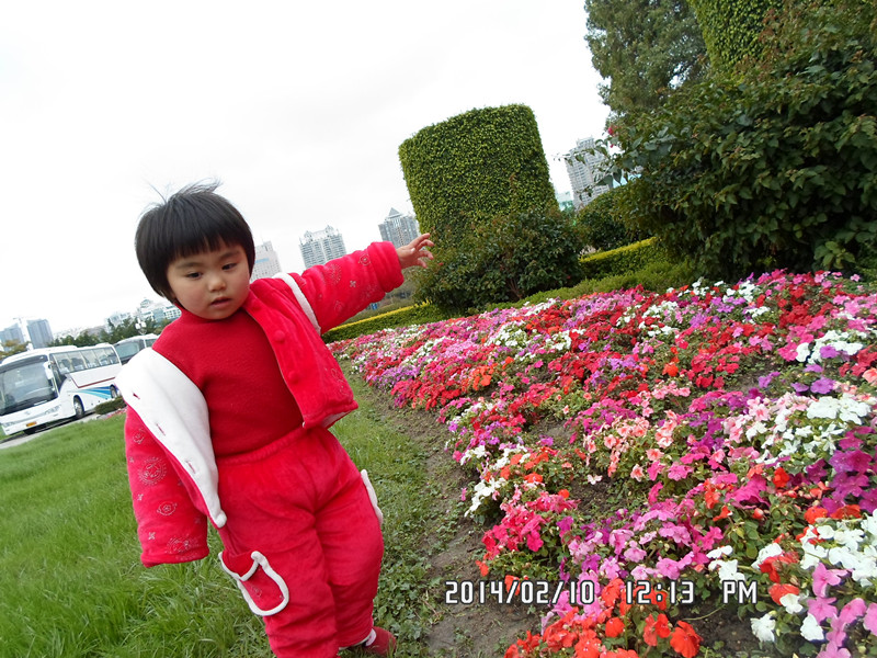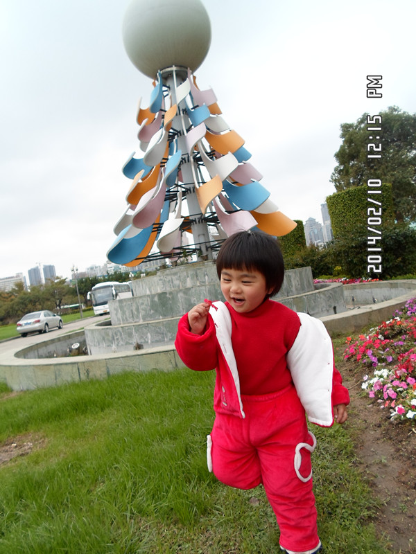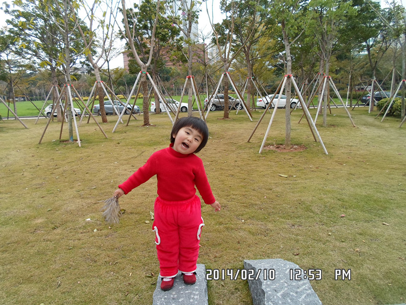 跑着跑着就热了,说是要把扣子打开,要脱衣服呢。我怕她流汗,风吹来会冷的,不让她脱。