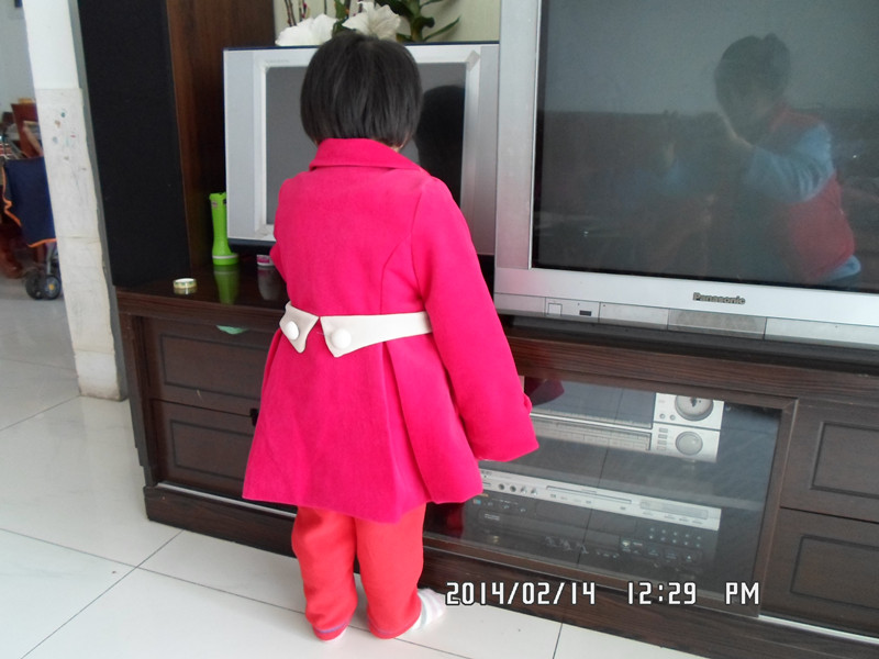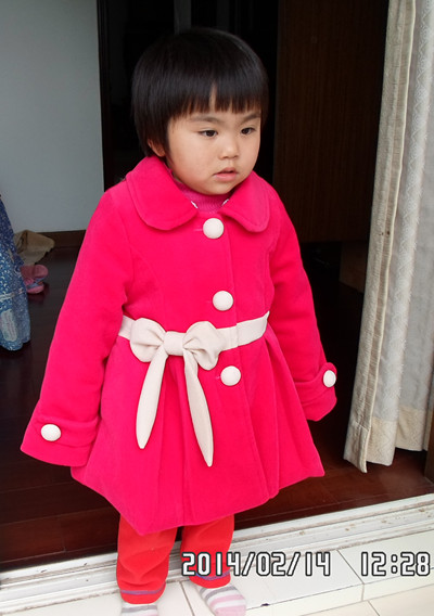这件大衣是婆婆买的,我们今年回老家过年,婆婆一直说要买件衣服给莹莹穿,家里有好多衣服都没穿,叫她不用买,她一定要买,结果买完后又去换了件大一号的,说是明年还可以再穿呢。腰带上系着一个大的蝴蝶结,款式还挺大方的。莹莹还特别的爱穿哦,说是裙子呢。不够穿着貌似有点笨重的感觉哦。红色的裤子是姐姐自已做的送给莹莹的。 本作品未经作者许可不得转载,转载请征求作者意见。擅自转载使用,将保留追究其法律责任的权利! 评分记录