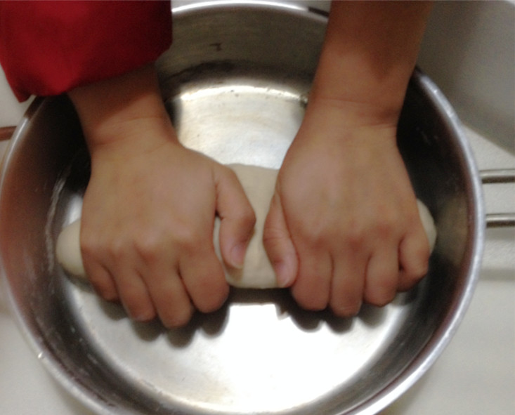 用力旋转后柄,面条就缓缓而出了。最开始,最需要大力,这个工作就交给老公代劳了!