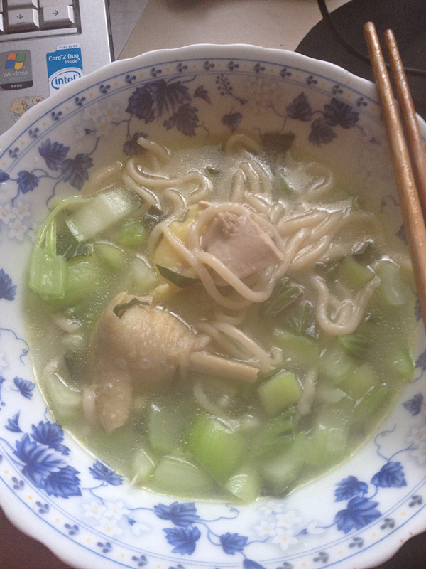 自己做的面条口感非常的筋斗,有点类似日本拉面的感觉。最主要的是,下面以后,汤水非常清,真的是无添加。