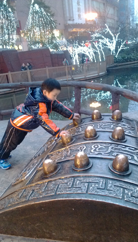 ![]() 罐罐最近是越来越臭美了,不管是在外面玩还是在家,或者是有什么新东西,都知道要拍照。而这组照片还是在过年时拍下来的,一直忘记写了,趁现在有空还是赶紧写下来吧,免得以后又会忘记。 ![]() 记得那天下午没什么事,我们也不用去走亲戚什么,就和罐爸说随便走走看看就好了,感受一下节日的气氛。于是就去了沙坪坝的三峡广场。到那里一看,还是熟悉的地方,熟悉的场景,唯一不同的就是多了很多的彩灯,而正是因为有了这些五光十色的彩灯,才让广场上的节日气氛更浓。当然,也就多了很多休息的和玩耍的人们,也就让广场的步行街上更加的热闹,才能更有节日的气氛。 ![]() 而我们在走走看看中,罐罐是看到有彩灯就比较好奇,毕竟现在大一岁了,知道过年是什么了,不象原来那么朦朦胧胧了。 ![]() 桥对罐罐的吸引力永远都那么的大,不知道为什么,罐罐很喜欢桥,即使在车上老远看见,也会很兴奋的叫起来的,而看见这种能自己去走的,那是必须要从桥上通过才行的。 桥墩上也拉有彩灯,背后的树木从也是彩灯片片,如此美景,爱臭美的罐罐马上就摆好pos了,必须马上给他拍上一张才能走的 ![]() 广场上的雕塑-古代的编钟,因为有灯光的投影,更增添了神秘的魅力。可惜的是我没有带相机,用手机拍的,效果是不一样的 ![]() 哈哈,这是在做俯卧撑吗? 其实我罐罐想爬上去。被我阻止了,可不能随便乱爬的,公共设施大家都要爱惜才行的,良好的习惯必须从小培养的 ![]() 这个桥就比较长了,而且罐罐身后的那些灯的颜色会不停变化的,其实这个远看整个应该是个大帆船的,寓意应该就是一帆风顺的 ![]() 现在是紫色了,虽然是手机拍的,效果还是可以的哈,自己给自己夸夸,呵呵 ![]() 这个背后的场景是蓝精灵,因为灯光有点强,还是依稀能看见蓝精灵里面的几个卡通人物 ![]() 也就只有每年过才能看见这些漂亮的灯展,而每年的灯展虽然有点大同小异,但仔细看还是有区别的,所以,每年留下这些美丽的照片,等以后看看又是别样的感觉了。 本作品未经作者许可不得转载,转载请征求作者意见。擅自转载使用,将保留追究其法律责任的权利!