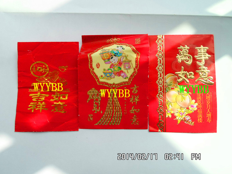 这三个烫金字“万事如意”,分别是莹莹的奶奶、大姨、小姨送的红包,莹莹的奶奶送的红包最多的,莹莹一拿到手就马上打开,抓在手中说哇这么多吧。搞得大家笑她挺贪财的。她大姨及小姨的小孩都比较大,我就说互相不用了,可她们说莹莹还小,还是要包的哦。