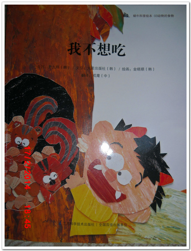 ![]() 阅读日期:2月18日 参与人员:妈妈和宝宝 绘本名称:蜗牛科普绘本《我不想吃》 绘本特色:图文并茂的图书,让孩子在生活中学科学! 阅读年龄:0-6岁 阅读心得:看到这个题目《我不想吃》,相信大家一定会认为这是一部有关孩子挑食的绘本吧,开始我也是这么认为的,但读完后才知道了,小小的图画书中,包含着很深的科学知识。 要不都想现在的孩子真是幸福呢,光书本的内容就琳琅满目,就如这本《我不想吃》,宝宝拿到这本书让我和他讲的时候,宝宝笑得嘿嘿的,因为书中的主人公小妖精放着妈妈做得香喷喷的白米饭不吃,而去吃一些灰喜鹊吃的发苦的黑枣、小松鼠吃的发涩的橡子、熊吃的生鱼,就连屎壳郎滚的粪球小妖精都尝了尝,结果可想而知,那些动物吃的食物,人类是不能吃的。 通过这个简单但不简洁的故事,告诉孩子们动物都是吃什么,而人类的食物与动物的食物是不相同的,动物喜欢吃的东西,我们人类是无法入口的。看似枯燥无味的科学知识,原来就这是这么简单,寓教于乐,相信孩子都喜欢@! 本作品未经作者许可不得转载,转载请征求作者意见。擅自转载使用,将保留追究其法律责任的权利! 个性签名