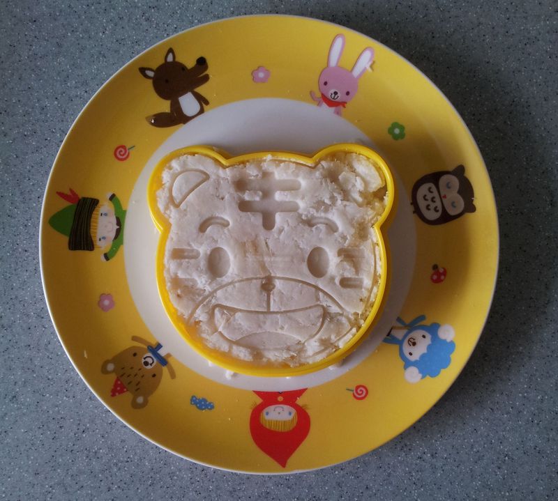 我们家也有这个模具,闲置着了,看到亲的帖子也想起来给儿子做一个巧虎饭饭吧。