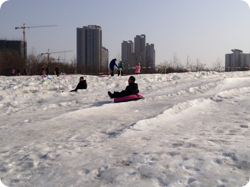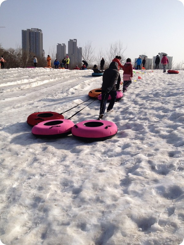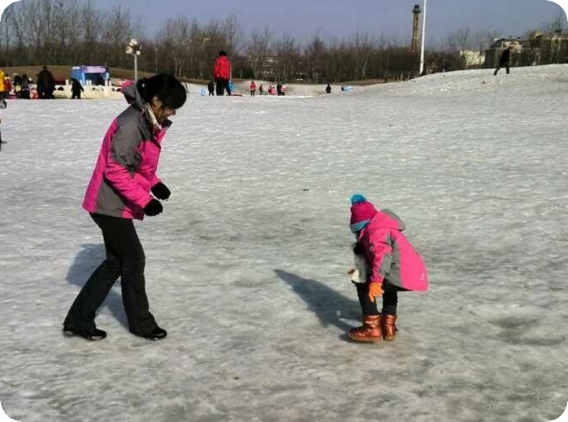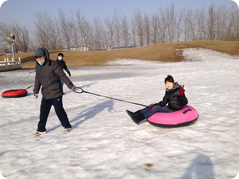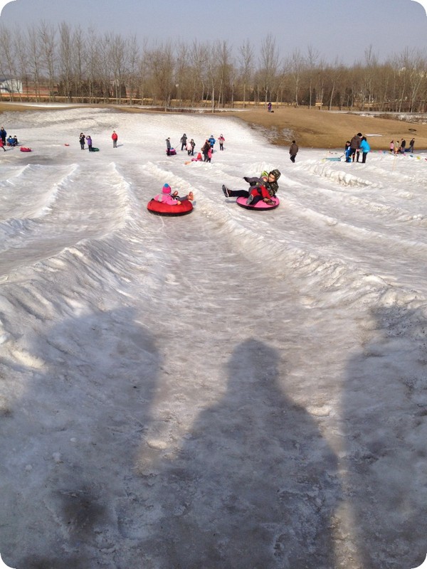 今年的春节是在通州过的,所以活动的安排就尽量安排在通州啦,初二定了温泉水世界,初三就去冰雪节逛逛吧。通州的冰雪节是在运河公园举办的,分为雪场和冰场,根据不同的组合有很多的套票,我选择了喜欢的项目雪场冰场给每个人各来了一套,春节之前在淘宝订好了票,由于这项活动受天气的影响太大,所以问卖家如果没用的票能否退,得到肯定的答复,只要电子票没有兑换就可以退,还不错。 冰雪节带贝贝去玩过很多次了,她的兴趣在玩雪上,对那些项目兴趣不大,包括很多孩子喜欢的雪圈也一般般。而我对于在紫竹院公园玩过的小冰车念念不忘,想要再玩玩,一一妈妈特意说想滑水冰,单独给买了带着个项目的票,而我们其他人不会滑,就打算玩玩冰车得了。