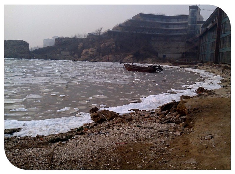 这是小家伙首先要玩的大石头,沿着碎石向大海的方向走下来,接着踏过一处冰雪覆盖的区域,让谦感兴趣的大石就在眼前。因为有冰,担心孩子滑倒,所以在石头上更多的时候都是谦爸牵着小家伙的手的。看父子看海的背影,是不是很有爱啊。父爱如山,在大海面前老爸更加的伟岸,牵着宝贝的手长大是父母幸福的感动。