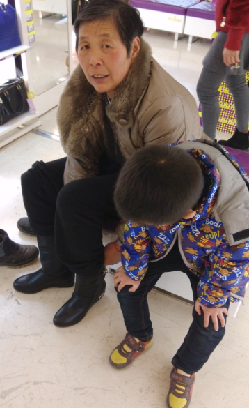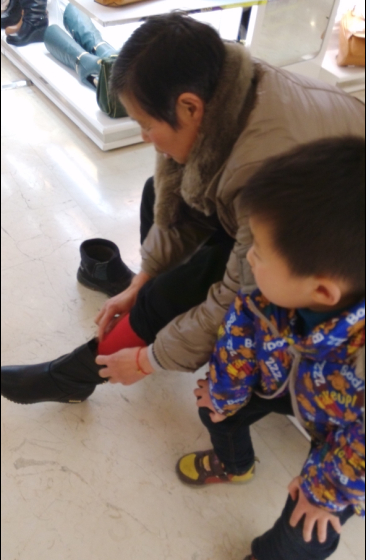 到了万达,就去逛逛衣服店,衣服很多,可是都很贵,也不打折,所以我们也就没有买什么,在每家店门前都有一些祝福语,气球什么的,新年也是很热闹的。后来经过鞋店的时候,老妈说想要买一双鞋子,于是我们就在里面看看有没有合适的鞋子,后来终于找到一双妈妈喜欢的,然后就坐下来试一试了,点点就给外婆做参谋,点点说外婆这双鞋很好看,然后就给外婆买了下来,才两百元,不贵。