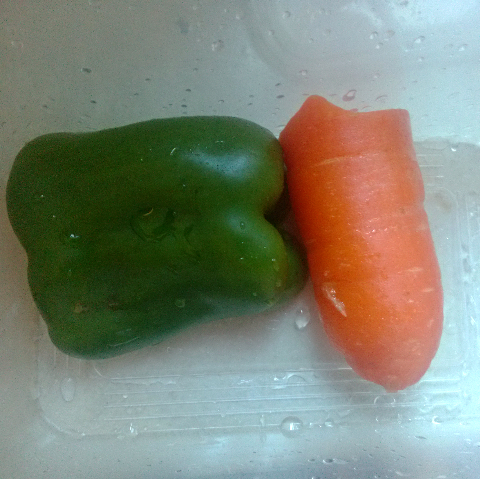青椒半个,红萝卜半个,还有白洋葱半个(忘了拍了)。