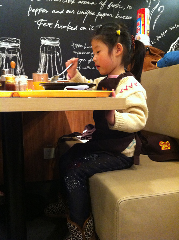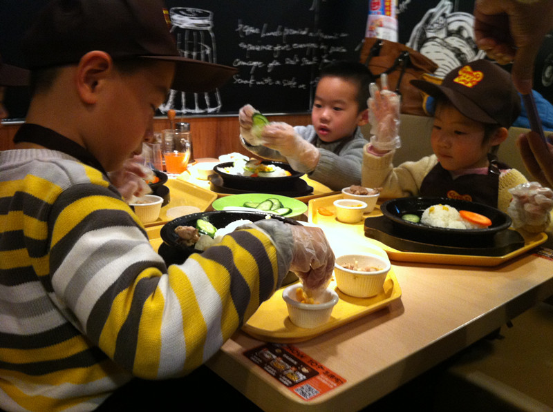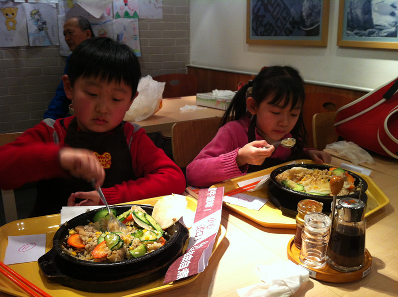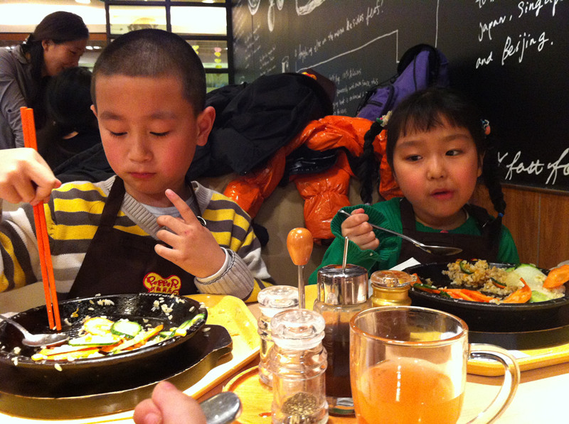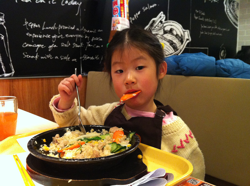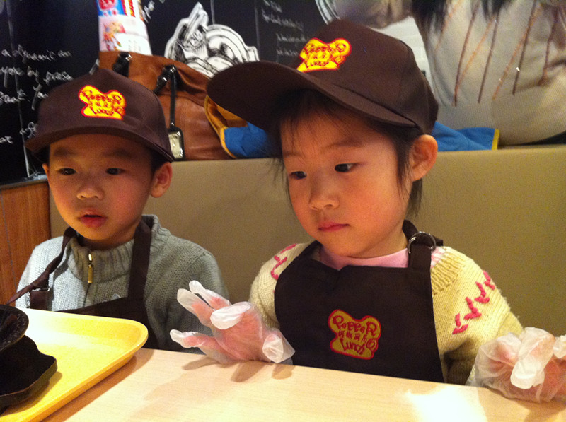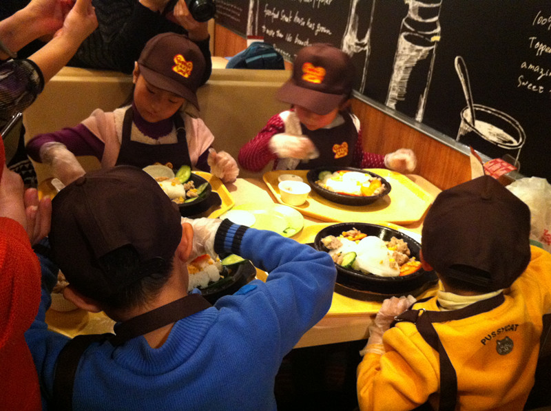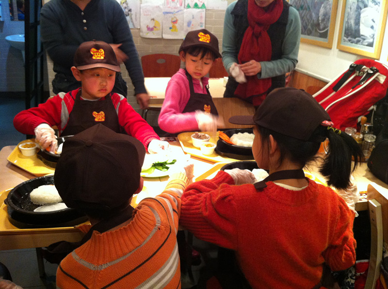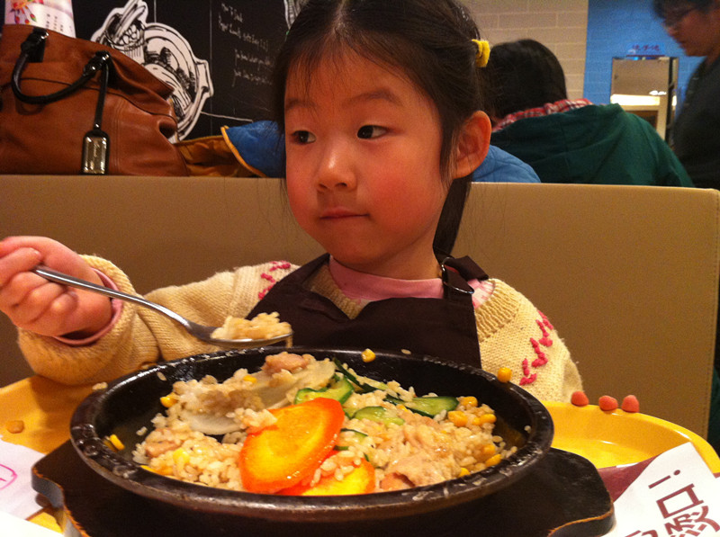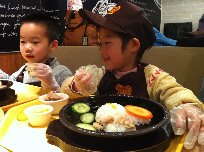 上周六,用敬仪爸的话说,是终于吃上闺女做的饭了。嘿嘿,还真是难得呀!我们和一众小朋友在位于北京市华贸中心地下一层的餐馆胡椒厨房里,度过了欢乐的上午时光。小朋友们免费吃了一顿自己亲手做的大餐,满满一大盘子饭菜大部分小朋友都吃光光了,还是自己做的饭香啊!当然孩子没吃完的家长给打扫了。现在不是崇尚光盘行动吗?因此就有了敬仪爸的感叹:终于吃上闺女做的饭了,其实是他闺女吃剩的,哈哈。 ![]() 敬仪前一个多月一直在舅舅家过寒假,周末爸爸妈妈接她到处玩去,上周六我们先去舅舅家接敬仪,然后再奔目的地。可惜敬仪爸错误地估计了路况,带我们走了一条巨堵无比的路,等我们到达胡椒厨房,已经晚了差不多一个小时了。孩子们自我介绍、领奖状、拍合影、以及所有前期的准备工作我们都错过了,直接赶上了此次活动的主题----做大餐和吃大餐。嘎嘎嘎,要是连这个都错过了,我们仨估计得哭得死去活来呀! 胡椒厨房的漂亮阿姨招呼孩子们来排队领手套了,等会儿要戴上手套做饭给自己吃,一定要保持手套的清洁哟。当天一共有12个小朋友,和家长们欢聚在胡椒厨房,热热闹闹又井然有序。 ![]() ![]() 该敬仪领手套了 分发完手套,孩子们又领到了工作服,穿戴好围裙和帽子,集体合影之后,就要开始给自己做饭了。看这12个娃整齐划一的装扮,还真像那么回事哈。 看到我家宝贝敬仪了吗?前排中间这个就是。 孩子们戴好手套,坐回到座位上,等待发餐了。 ![]() 胡椒厨房的阿姨们依次给孩子们端来他们午饭的食材-----先是各种漂亮造型的白米饭。 ![]() 对面两个小朋友的饭来了,敬仪和恒恒的还没来,俩小家伙羡慕地盯着看呢。 ![]() 不一会儿,敬仪这桌四个小朋友的饭都来了,他们的饭有三种造型-----海豚、花、小兔子。敬仪的饭是一只小兔子。 ![]() ![]() ![]() 饭端上来之后,阿姨们又给每桌上了一盘子菜,有胡萝卜、黄瓜、白萝卜。每个小朋友还领到了一小碗鸡肉。食材全部上完之后,该孩子们各显身手,给自己的饭造型了。 ![]() ![]() 看敬仪这专注的小模样。小家伙慢慢悠悠,不着急不着慌地布局着她的小兔子,别的小朋友的饭都摆满了菜和肉,敬仪就摆了几片胡萝卜和黄瓜。 ![]() ![]() 拍拍其他桌的小朋友,大家都忙着做自己的饭呢。 ![]() ![]() 最后妈妈一着急,干脆往敬仪的盘子里倒上食材,不然人家的饭菜都烤熟了,敬仪还在磨叽呢。最后的成品饭上桌了啦。 ![]() 在铁板四周还围了一圈硬纸壳,上面写着“小心烫口”,可见胡椒厨房的安全工作做得很到位呀。要不然碰到这滚烫的铁板,小娃娃们的嫩皮非得起泡不可。 ![]() 赶紧趁热将菜、饭和肉搅拌均匀之后,就可以吃啦。 ![]() 敬仪身边的恒恒去一旁吃去了,剩下三个小朋友专心吃着自己的饭。 ![]() ![]() ![]() ![]() ![]() 小朋友们吃饭的时候,家长们都在一旁忙着拍照。这难得的宝贝自制的午饭、宝贝认真的吃相是该保留下来呀。 ![]() 拍拍其他桌的小朋友,这是可爱的小涵涵和妈妈 ![]() 小朋友们都在大口地吃着。 ![]() ![]() ![]() 不一会儿敬仪对面的强强就将一大盘饭菜吃光光了,不愧是小伙子呀,吃饭又快又好。真令人羡慕呢! ![]() 连敬仪都把大半盘子的饭菜吃得差不多了,妈妈也尝了一口她的饭,味道还真是不错哟。愉快的胡椒厨房自制午餐到此就圆满结束啦!!好吃好喝真开心呀!! 本作品未经作者许可不得转载,转载请征求作者意见。擅自转载使用,将保留追究其法律责任的权利! |