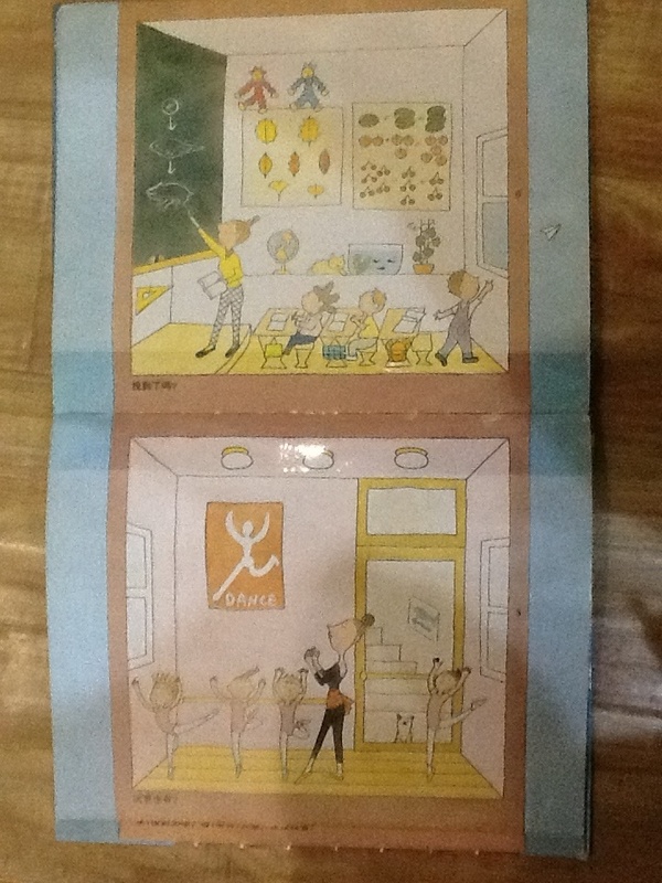 五楼有一些小女孩跳芭蕾舞呢,每个跳舞的孩子体形优美,小猫在哪里呢,原来它在玻璃门口看小朋友跳舞呢。 六楼是一个教室,老师正在讲什么呢,点点说这里有细胞,鱼,爬行动物,在讲进化呢,旁边的墙上还有各种树叶的介绍,还有加减法,鱼缸,地球仪,小猫慵懒的坐在鱼缸旁边。