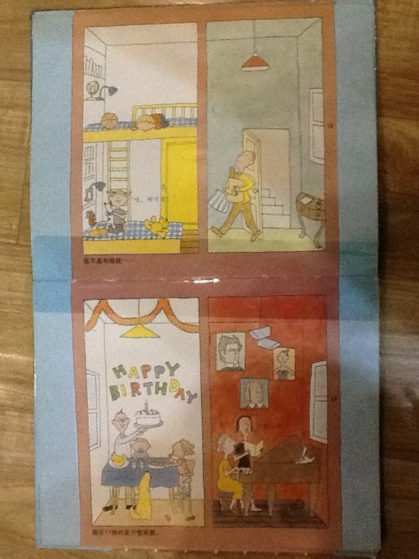 十一楼是气球的世界,小猫也在玩气球呢,老爷爷都被气球包围了。十二楼是一个音乐室,人们在听演奏大提琴,一只小白猫在凳子上面睡觉。