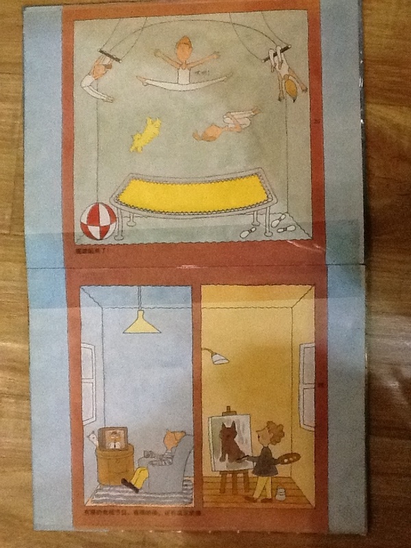 这里有猫的电视,一个阿姨还在画猫,并且有一只真正的猫。二十六层楼是一个体操房,小猫也在蹦床了,真有意思。