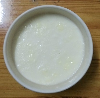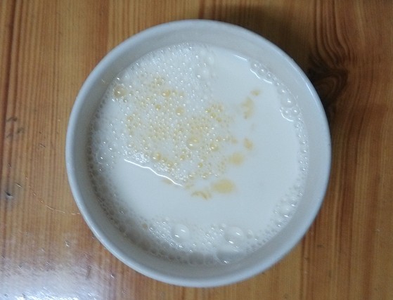 前段时间看到有人在QQ空间里分享了很多美食的做法,其中双皮奶引起了我的注意,因为做法比较简单,而且图片看起来很营养美味。如果太复杂的做法我这个懒人是不愿动手的,所以趁着今天下午有空,就尝试着做了一下。以前,我还真不知道有这么一道美食,也不知道为什么会叫双皮奶,看看做法其实就是鸡蛋加牛奶做出来的。先来说说做法,再来总结经验。 ![]() 1.准备的材料只需要三样,鸡蛋、牛奶、白糖。因为第一次尝试,所以材料不敢放太多,怕不好吃浪费了可惜。就用了一瓶250ml的纯牛奶,2个鸡蛋,适量的白糖。 ![]() 2.先把纯牛奶放锅里煮,煮开即可。 ![]() 3.把煮开的牛奶装到碗里,放凉。煮开的牛奶后放凉后,上面会有一层薄薄的皮,估计这也是取名叫双皮奶的原因吧。 ![]() 4.两个鸡蛋只取蛋清,不要蛋黄,然后放入适量白糖,搅拌均匀。 ![]() 5.再把剩有牛奶的碗中的牛奶倒入蛋清中,一样搅拌均匀。记得牛奶表面有一层皮,那层皮不要倒入。 ![]() 6.然后再把牛奶重新倒入原来还剩下一层皮的装牛奶的碗中,倒的时候沿碗边倒入,这样原来留在碗中的皮会自动浮在表面上。然后放入锅中隔水蒸,类似于蒸蛋一样,差不多蒸15分钟左右即可。蒸好后就是下面这样的。然后放凉,凉了以后就会凝固。 ![]() 7.本来放凉凝固后就像上面那样可以直接吃的,但我看到图片上的图片是放在盘子里的,而且像果冻一样,所以我也想似似看。于是,就把碗扣倒在盘子里。 ![]() 8.把碗拿掉后就是下面这样了,是不是像果冻呀,呵呵。 ![]() 看看我家大宝,吃得很香吧,那就说明味道很不错,呵呵。黄婆卖瓜了! ![]() ![]() 其实我做出来的,看相还是没有别人文章里的图片那么好看,但感觉味道还行,宝吃了第一口说是鸡蛋,不是牛奶,我也吃了一点,确实鸡蛋的味道有点盖过了牛奶,也不知道是不是牛奶放少了一点,如果下次再做的时候可以考虑再适量多放一点牛奶。宝差不多吃了一半,小侄子多多也很喜欢这个味道,吃了不少。希望下次做的时候味道能更好。 本作品未经作者许可不得转载,转载请征求作者意见。擅自转载使用,将保留追究其法律责任的权利! 评分记录