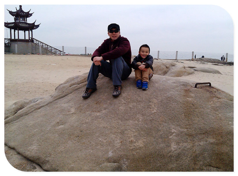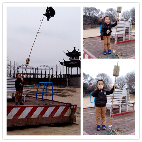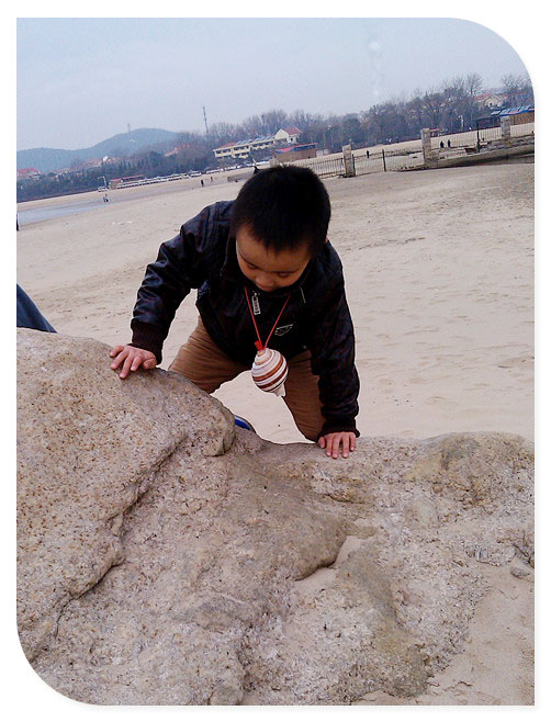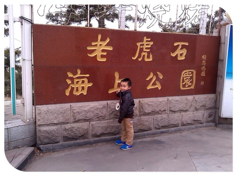 老虎石海上公园,妈妈让谦去指出认识的字,小家伙不肯,还说就不指!妈妈说:“你不指,我就不走,我不带你玩”,呵呵,和孩子妈妈也得耍耍赖!后来小家伙指了上面认识的字,然后妈妈又教了小家伙一遍,得了,前面走着玩。