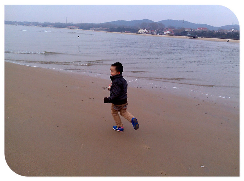 这是谦追逐停歇在海边的海鸥呢, 真喜欢看孩子奔跑玩耍的模样,好快乐,好健康,无忧无虑......让人羡慕!