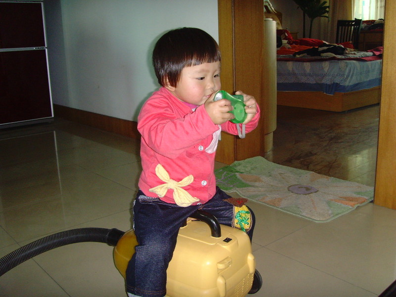 昨天也是这样,看到我给她拍照,就要过来抢我的相机,最近她喜欢自己拿着相机拍,毕竟还小,拍出来的东西都不能够看,她就喜欢按快门的感觉。看到旁边有一个手按式的手电筒顺手就拿给她了,按上去有点像照相机的感觉,这就是宝宝的另类照相机了,按了一下给宝宝看,她就学会了!然后就一发不可收拾了,自己拿着去玩了,看到吸尘器在那里,就当凳子坐了,按了几下还自己看看里面有没有照片呢! 哈哈,我终于有了自己的相机!好开心啊! 先来给妈妈拍一张! 我来看看照片!恩,还不错哦! 竖着再来一张! 奶奶,你怎么下楼了啊! 这个快门怎么了,按不下去啊! 真高兴啊,今天我有照相机了,这个椅子坐着真舒服! 本作品未经作者许可不得转载,转载请征求作者意见。擅自转载使用,将保留追究其法律责任的权利! |