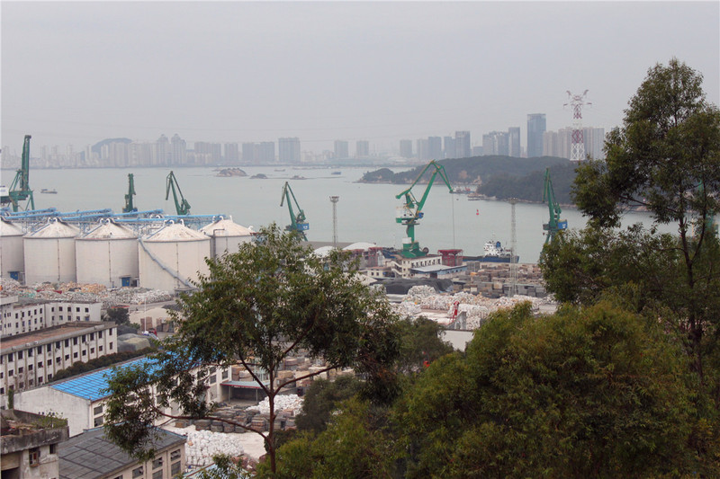 融绘状元楼位于厦门东渡路濠头牛头山公园山顶,即厦门博饼文化民俗园。一个全视野的直达电梯转瞬就到了山顶,站在融绘状元楼外,视野十分开阔,左边是车水马龙的高架桥错落有致,右边是东渡海港,渔船\邮轮等忙碌着,远望还能看到海沧大桥全景。白天看到的景色尚且这么美,晚上灯光璀璨,将会是更加迷人。