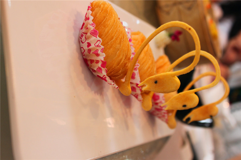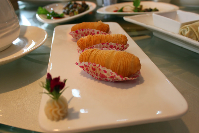 这次的美食品鉴是以茶点为主。原本还想着茶点无非就是一些简单的吃食,没有太大的期望。没想到每一样上桌,都让所有的人立刻拿起摄像机对这些美食开始了“长枪短炮”一通狂照相。 看到了么?各种美食不仅精致,而且色香味俱全。特别是榴莲酥,香脆可口,咬上一口满嘴立刻被榴莲的香味弥漫。