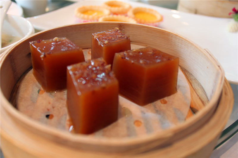 茶点美食品鉴不仅有中式茶点,而且还有各种港式甜点。琼枝甘露,酸奶,肠粉,灌汤包,蒸排骨,面线糊,海蛎煎,土笋冻,酱香蒸凤爪,浓汤滑鸡粥,煎饺,港式蛋挞,天鹅酥等等,