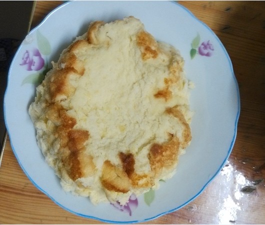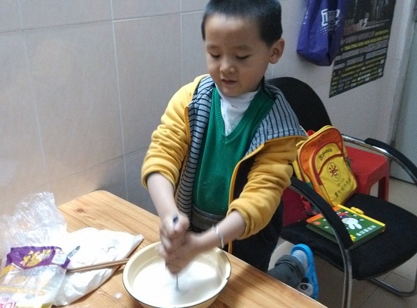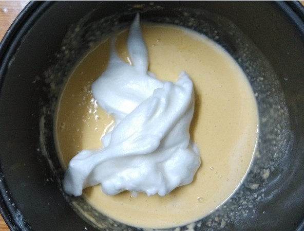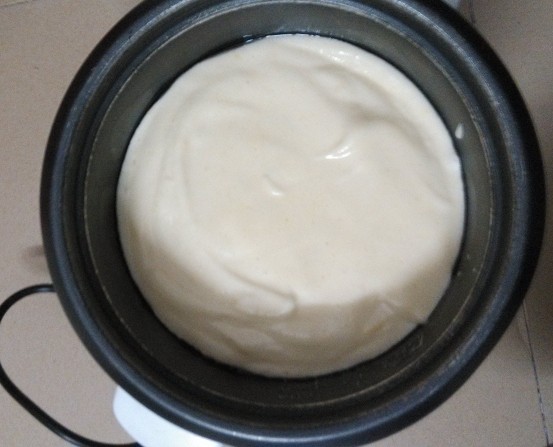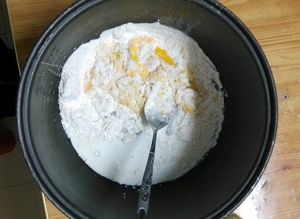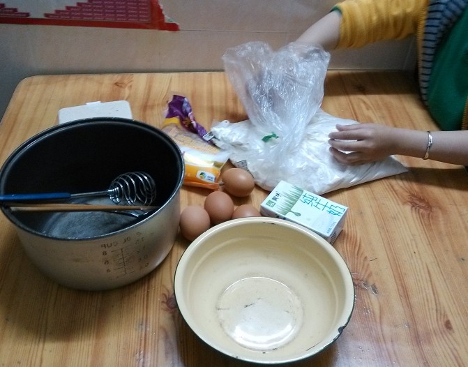 家里之前别人给的烤箱坏了一直也没拿去修,看着旧旧的也不太想去修,去年试读中了烘焙的书,一直想着自己动手试试,可因为没有烤箱也就没有实践的机会。前段时间刚好无意中看到电饭锅也能做出美味蛋糕,当时就特别留意了一下做法,看起来貌似很简单,就想着实施一下。刚好原材料家里都有现成的,于是说做就做,想试试看没有烤箱是不是也能做出美味蛋糕。 ![]() 宝一听说我要自己做蛋糕,兴奋劲就来了,好奇地在旁边看我准备材料,我还没开始做,宝就一个劲地在那儿玩面粉。想着第一次做,抱着不能浪费材料的想法,不敢准备太多,万一不好吃浪费了怪可惜的,所以还是少做点先试试看吧。 ![]() 1. 材料准备:鸡蛋4个,牛奶、面粉、糖、盐、油、器具要保持干燥,不能有水分。 ![]() 2. 蛋清分离,在这个过程中宝坚持他要帮我打蛋,我在旁边指导,结果差一点就被宝把蛋黄给弄到蛋清里了,幸好我及时接住了。鸡蛋是从冰箱里拿出来的,所以还是比较好分离。 ![]() 3. 先把蛋清打均匀后,加入一勺白糖,为了突出蛋糕的甜,可以适量加一点点盐。 ![]() 4. 打到这个程度的时候,再放一勺白糖,继续打发。在打蛋的过程中,宝一直想要自己打,他觉得打蛋器太好玩了,让他玩了一会儿最后还是我亲自动手,其实做蛋糕的过程挺简单,就是打蛋的过程有点辛苦,我整整打了有十多分钟呢。 ![]() ![]() 5. 蛋清打到这个程度就可以了,很浓稠了。 ![]() 6. 在蛋黄中放入适量面粉和牛奶、白糖搅拌,具体多少我是凭感觉放的,开始觉得牛奶不够,就再继续加,搅拌均匀即可。 ![]() 7. 搅拌后就成下面的状态了。 ![]() 8. 再把打好的蛋清倒入,我是先后分两次倒入,然后上下搅拌,说是不能打圈圈搅拌,具体为什么我也不太清楚,只知道要上下搅拌才可以。 ![]() 9. 搅拌均匀就成下面这样了。 ![]() 10. 先把电饭锅加热一分钟,再在周围和锅底涂上油,据说这样可以避免粘锅。 ![]() 11. 把搅拌好的蛋糕倒入电饭锅,按下煮饭键开始煮,加热过后没多久就会自动跳到保温键,可以过上一会儿再按下煮饭键,自动跳到保温键后等上一会儿再按下去,反复大概三次左右吧,蛋糕就会熟了。 ![]() 12. 最后蛋糕还是粘锅了,倒出来似乎看相不太好,不过味道还不错,和卖的蛋糕有得一拼哦。 ![]() 看看可怜的电饭锅,被粘成这样了。说是涂了油不会粘锅,整不明白。 ![]() 在电饭锅里煮的过程,一直都能闻到蛋糕飘香的味道,宝不停地问:“妈妈,蛋糕熟悉了没有啊,我闻到蛋糕的香味了,好香啊。”刚端出来的蛋糕还很烫,宝盯着蛋糕不放,很想吃却又怕烫的样子。 ![]() 不是很烫了,终于可以开吃了。 ![]() 蛋糕配上牛奶,是很营养的早餐哦。所以买烤箱是必须的,得赶紧把计划落实,用烤箱烤出来的蛋糕估计更美味吧。 本作品未经作者许可不得转载,转载请征求作者意见。擅自转载使用,将保留追究其法律责任的权利! 个性签名