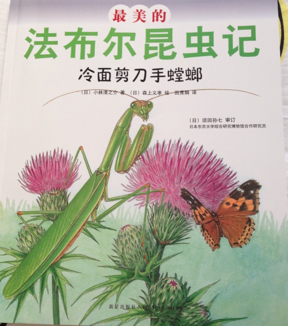 ![]() 阅读时间: 3.17 阅读成员: 妈妈 宝贝 适合年龄“ 3~6岁 绘本特点: 全面的讲述了螳螂的特征和习性 阅读心得: 关于法布尔妈妈们都知道,所以他的书也有好多的版本,前段时间给牛讲了其中的一本叫《高明的麻醉师泥蜂》之后,牛特别的喜欢听,于是给牛败下了一套这本书。书中各个动物都让我们一本书得连续讲好多次似乎才能满足孩子和我的好奇之心。 讲螳螂的时候我们想到了黑猫警长中的片段,也是讲了螳螂吃掉自己的丈夫的故事,书和动画片相结合起来,让孩子们更能深刻的认识螳螂是一种什么样的昆虫。 螳螂被法布尔起了一个这样的名字之后增加了孩子的好奇心,为什么螳螂就是剪刀手呢?还是一个冷面的?我们从封面上可以看到螳螂是非常漂亮的吧,倒三角形的头部,修长的身体,可人类却不喜欢它们,这究竟又是为什么呢?螳螂的前足为什么总是像祷告的姿势出现呢?这样的一种姿势有代表什么呢?雌螳螂为什么在结婚之后要吃掉孩子们的爸爸呢?孩子们又是如何长大的呢?太多问题出现了当你读完这个美丽的故事之后心中的不解就全部被解开了。 本作品未经作者许可不得转载,转载请征求作者意见。擅自转载使用,将保留追究其法律责任的权利! 评分记录