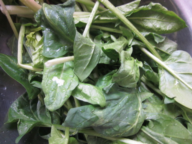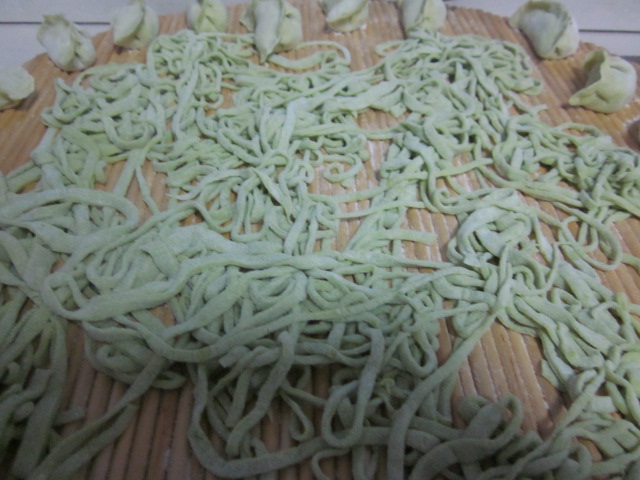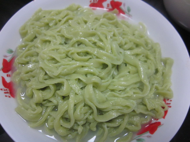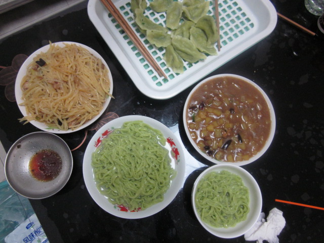 丰盛的晚餐,菠菜面绿绿的很好看又有营养。