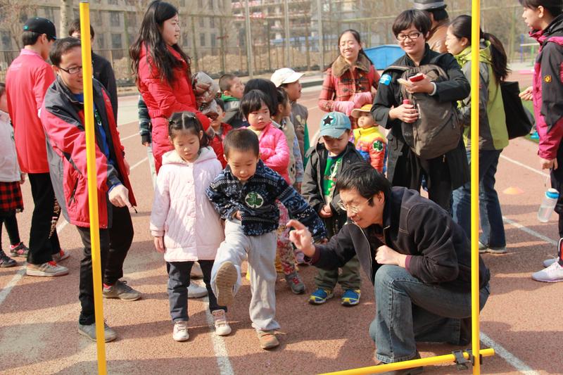 3月16日,北京的天气还真的很给力,天空中飘着一层淡淡的云,不冷也不热,真是个运动的好天气,由于家住海淀区的西北,一则离活动的地方百子湾一中体育场比较远,二则,对那一片地方不太熟悉,我们一家是8点半出发的,走东四环到四惠桥未及时到辅路,最后多绕了近半个小时,几经努力,找到活动地点都快十点了,运动场已经人满为患了,我们临时组队,正好赶上敬仪和崔梓昂一家的到来,推荐我家小牛牛当队长,队伍的名字就即兴取为“小牛队”。