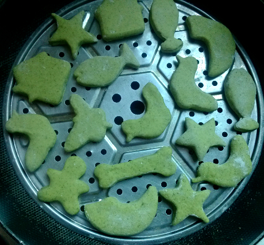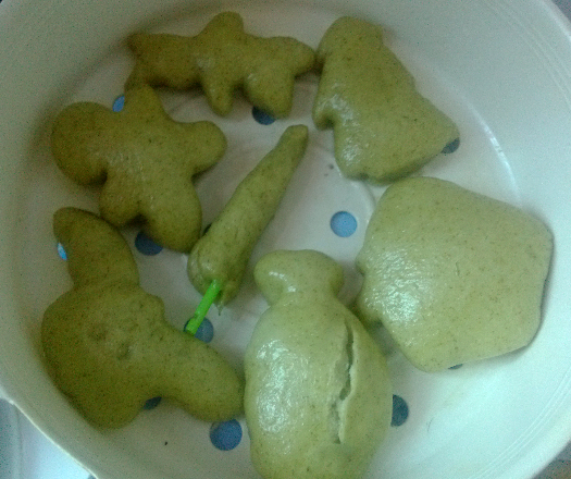 ![]() 周六那天买了艾叶,当天中午就做了艾叶蛋饼。然后下午有空的时候,又用艾叶汁和了面,跟孩子一起制作了艾叶馒头。真是一物多用,物尽其用呀! 本来做艾糍可能更合适的,因为艾糍才是正宗出名的,艾叶馒头我还真没听说过呢。只是家里没有做艾糍的材料,做馒头的材料倒是齐全,就只好做成了馒头了。现在做馒头也简单,只要放进面包机发面,然后再弄成型就好了,省心又省力呀!还有我过年做了那么多的模具,正是派上用场的时候呢!孩子很喜欢跟着我这样做馒头,做出来好有成就感呢! ![]() 这是从面包机取出来的发好的面团。我揉了一下,感觉有点粘手。 我的面包机是90ML的水加上一杯面粉的比例来和面,可以和成很漂亮的面团。而我这次是用菜汁,里面还有不少菜泥,是很稠的菜汁,所以就在份量上加了一点。我用200ML的艾叶汁加了两杯的面粉来和。事实证明,我这个面团水粉稍微多了一点,菜泥水份也是多的,我应该用190ML的菜泥就好了。下次知道了。 这个面团后来我又再加了些面粉进去再揉。然后再擀了几次。 ![]() 擀开的面团。 小手帮帮我把模具压到擀开的面上面去,并压一压。![]() 做好的各种可爱的馒头。我分两锅蒸,一锅是这个炒锅里蒸,用电磁炉的,另一锅里在电饭锅里蒸。大概是我这个电磁炉的火候给我弄错了,蒸出来的结果不漂亮的,反而电饭锅蒸的效果好些。 ![]() 这是小羽用他吃的棒棒糖的棒做出来的“冰棒”,我也帮他放进去蒸了。 ![]() 出锅了!小羽最关心的是他的“冰棒”。哈哈,做得不错嘛!他吃了“冰棒”之后,又把其他形状的馒头插在那根棒上,做出各种不出形状的“棒棒糖”,吃得好开心! 第一次用艾叶做的馒头,只有淡淡的艾香味,其实跟普通馒头也差别不大呀!后面的艾叶馒头我们都用来沾花生酱当早餐吃了。 ![]() 友情链接:艾叶鸡蛋饼 本作品未经作者许可不得转载,转载请征求作者意见。擅自转载使用,将保留追究其法律责任的权利! 个性签名