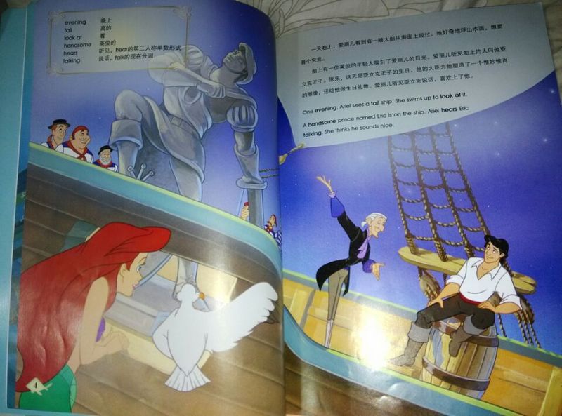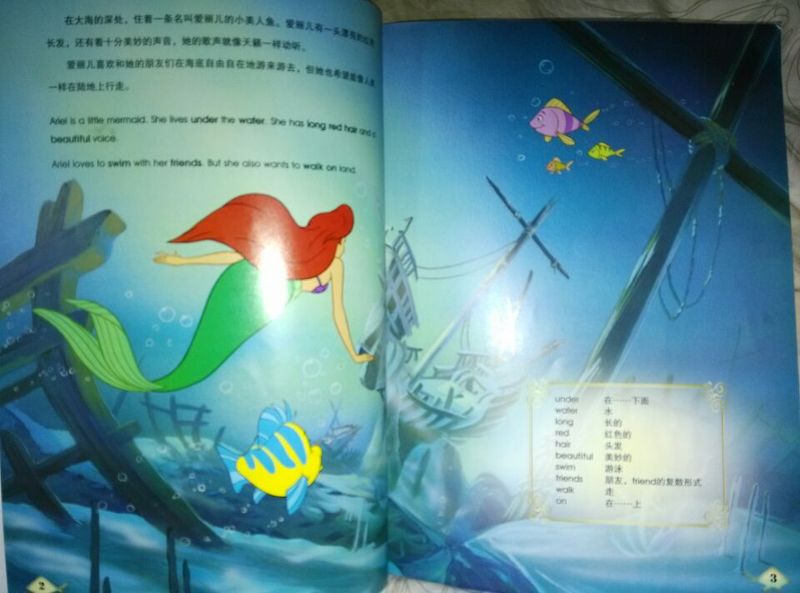 ![]() 故事里的图片: ![]() ![]() 下面是完美的结局。 ![]() 阅读日期: 3月17日 参与人员:妈妈和珍钰 阅读绘本:《小美人鱼》 绘本特色:中英文绘本,中英文对照,而且对一些词和短语英文都用黑体字标出,图书色彩很细腻,经典的故事孩子很喜欢。 阅读心得 此绘本和前一面的《白雪公主》是一起从图书馆借来的,理由也是珍钰非常喜爱故事的主人公--小美人鱼爱丽儿。经典的故事总是让小朋友们爱不释手,这个故事珍钰一样在电脑上看了好多次了,在图片馆里看到这本绘本时毫不犹豫的选择了这一本。故事里叫爱丽儿的小美人鱼长得漂亮又可爱,而且有一颗善良勇敢充满爱的心。绘本第一页是爱丽儿在蓝蓝的大海里游玩,她身边有好多泡泡和漂亮的彩色小鱼和她一起玩,珍钰说:妈妈爱丽儿真漂亮呀。看小女孩都喜欢美丽的事物,看第一页就把珍钰的眼吸引了。接着王子出场,爱丽儿被王子吸引住了,王子坐的船在海里遇险,爱丽儿奋不顾身的去救王子,并为了王子去找女巫把自己变成人类面不惜把自己天籁一样的歌声给了女巫。珍钰说:爱丽儿没了好听的声音很可惜,但爱丽儿很勇敢的。看到爱丽儿经历了千辛万苦最后终于和王子在一起了,珍钰说:真为爱丽儿高兴。然后又说:妈妈,我觉得王子没有爱丽儿好看,我还是喜欢爱丽儿。 本作品未经作者许可不得转载,转载请征求作者意见。擅自转载使用,将保留追究其法律责任的权利! |