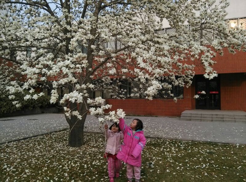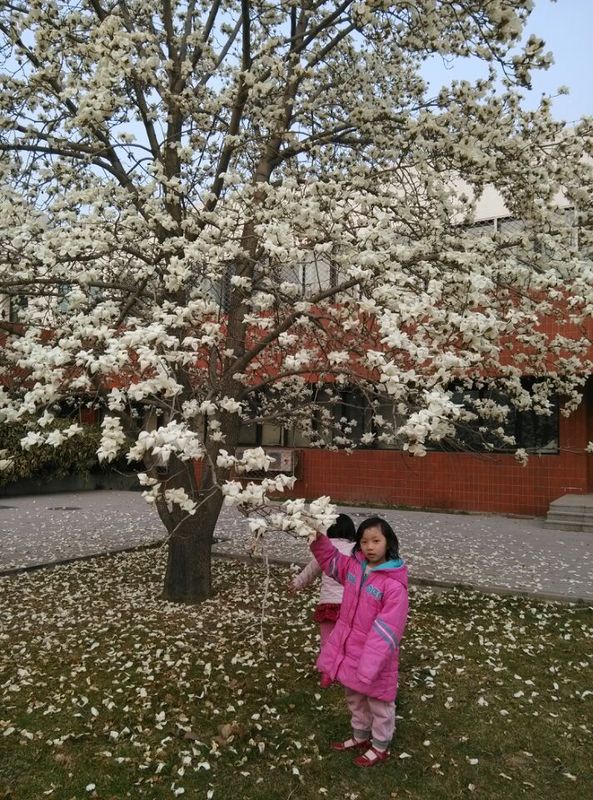 这是上周拍的,那天天气不错,在去幼儿园之前我带宝贝来看花,那时花还没有完全盛开。 ![]() ![]() 下面是今天拍的,同样的地方,花已经盛开并且出现了落英缤纷的场景。看枝头怒放的花朵还有地上的片片落花。 剪刀手势~ ![]() OK手? ![]() 上面是桃花,下面上玉兰花喽~ 仰面看枝头盛开的白玉兰花,伸手拉住树枝嗅花,说:妈妈,这玉兰花可真香呀! ![]() 妈妈,拍一个~(大的要拍照,小的去地上检落花去了) ![]() 来张白玉兰特写~ ![]() 上周没来看玉兰花,这周来看时虽然枝头满是盛开的玉兰花但地上已经是落花满地了,没看到白玉兰花刚刚盛开的样子,感觉有点遗憾呢。 再到别处转转,发现还有几棵更高的白玉兰花也在盛开,即使地上落花片片,但依然吸引了我三个的脚步,走过去发现还有紫玉兰树,而且紫玉兰花还没有开放,好美呀!珍钰感叹着。 ![]() 紫玉兰花苞特写~ ![]() 俩宝贝玩的不亦乐乎,在那寻宝呢~ ![]() 迎春花~ ![]() 调皮的宝贝说是攀登~ ![]() 赏花后又带宝贝去玩滑梯和别的一些健身设施,回家时宝贝说:妈妈,今天我也很开心呢。 女儿开心,妈妈自然也开心喽~ 另外,准备过两天带女儿来开紫玉兰盛开的景色,一定很好看的。 本作品未经作者许可不得转载,转载请征求作者意见。擅自转载使用,将保留追究其法律责任的权利! 评分记录