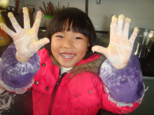 一直想给孩子做些好吃的,无奈,我就那几个菜几个花样,孩子们都尝过了,好象提不起食欲!面粉也不是我们南方人的主食,因此,要在这个上面耍花招,我想我有点不可能吧!偏我家小女二小姐喜欢面食,有时不得不赶着鸭子上架,给她做两个粑粑什么的让她尝尝新,其实味道不怎么样,我觉得有些让孩子受委屈的感觉,况且,这段时间,熠每天晚上只吃点菜,不吃饭,我想我得出招了! 正好昨天下雨,星期天不能出去,正好上网看到了HAPPY栋阳妈妈的嘛事,我想我得做了!于是就仿着来了一样,用心良苦啊,只要孩子吃,咱就试着做吧! 和面了,三汤匙的面粉,加一个鸡蛋,再加两汤匙的水,然后加一点白糖,因为熠喜欢甜一点,依个人口味来吧,其实心里一直没底,不知能不能学会,但我想得试,试一试才知道会有什么样的结果! ![]() 因为,熠觉得不好玩,也担心她又要看动画片,而且觉得也让熠加入进了,母女一起做,是一件开心不过的事,因此抛开熠会弄脏弄乱的想法,让熠也参加和面,搓长条及挤压的全过程,弄脏了,就给她想办法弄干净,所以这是一个温馨的过程和场面! 一开始就弄脏了,但不要责怪她,孩子享受着这一切! ![]() 看和面的熠熠,多认真啊! ![]() 搓圆了,可怎么都不是圆的啊! ![]() 我没全做完,我就有些按奈不住了,决定先煮点给熠尝尝,看到底好不好吃,孩子喜欢不喜欢!因为没做过,准备不充分,家里也没有什么能一起煮着吃的,想加蔬菜和肉片,熠都说不要!只好清煮了一点,放了一点油和盐,再加了点点糖!这些熠都吃完了,因为没吃午饭!我尝了尝,还算可以! ![]() ![]() 晚上,还有一点,我就加了一点蛋和葱,老公尝了一些,也觉得还可能,我们讨论了一下,其实可以用来冲甜酒,还可以加粉丝,下次得乱丰富一点!晚上熠又吃了好多! 自己认为,这次尝试是成功的! 本作品未经作者许可不得转载,转载请征求作者意见。擅自转载使用,将保留追究其法律责任的权利! |