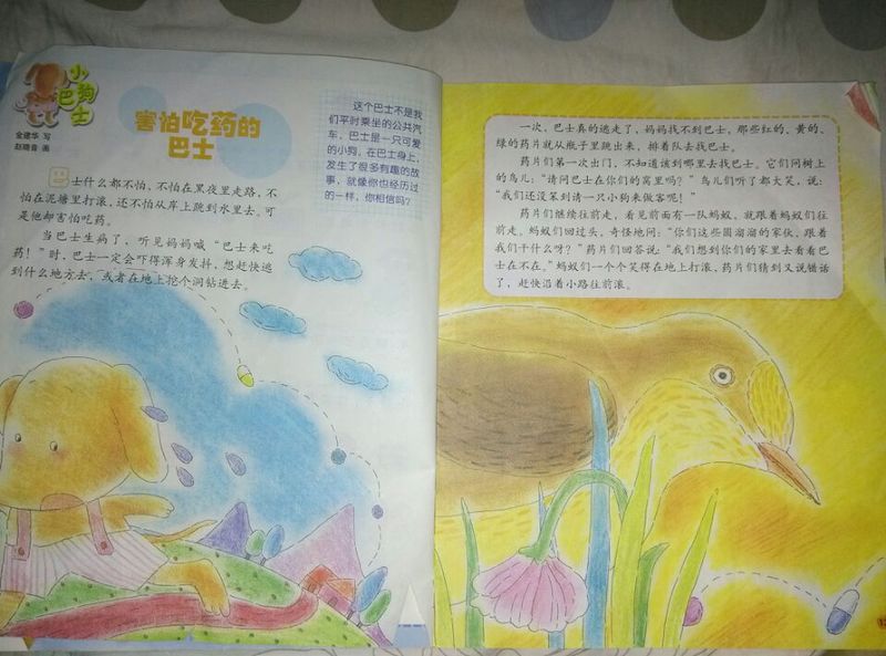 ![]() 阅读日期: 3月22日 参与人员:妈妈和珍钰 阅读故事:《害怕吃药的巴士》 故事特色:小狗巴士故事系列之一,讲述害怕吃药的故事事。 适读年龄:3--6岁 阅读心得本故事讲的是小狗巴士什么都不怕,不怕在夜里走路,不怕水,也不怕在泥塘里玩等,但有一样他最害怕,就是吃药,每当妈妈喊它吃药时,小狗巴士就怕得要命,就要赶快逃走。一次巴士真的逃走了,药片们去找巴士了,闹了一些笑话,在大象,狮子,小兔等的帮助下找到了巴士并让巴士吃了药。后来巴士的病就好了,巴士觉得药真好,从那以后就再也没有逃跑过。 吃药的问题生病的孩子都遇到过,珍钰小时候生病时不肯吃药,我也很着急,想尽各种办法,夹在她爱吃的饼干里,花卷里,把药片弄成粉末冲水等,结果都不吃,最后只能边哄带吓唬的硬灌下去。结果是喂进去一部分洒一多部分。再大一些时就给珍钰讲道理也能听进去,还把真实的情况说轻一些,比如有一点点若,但喝了病就好了,还好珍钰大一些吃药没小时候那么费劲了。给珍钰读这个故事时,珍钰说,我就不怕吃药,对吧,妈妈?我说:对,珍钰勇敢。这个故事告诉我们小朋友们有时会怕某一种东西,这都是正常现象,过一段时间就不怕了,象巴士一样,开怕吃药,后来不怕了。珍钰说,巴士越来越勇敢了。 本作品未经作者许可不得转载,转载请征求作者意见。擅自转载使用,将保留追究其法律责任的权利! |