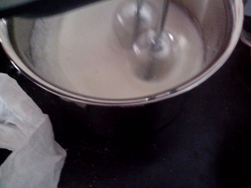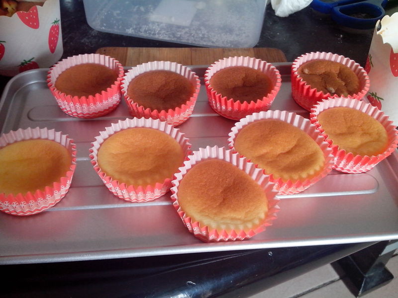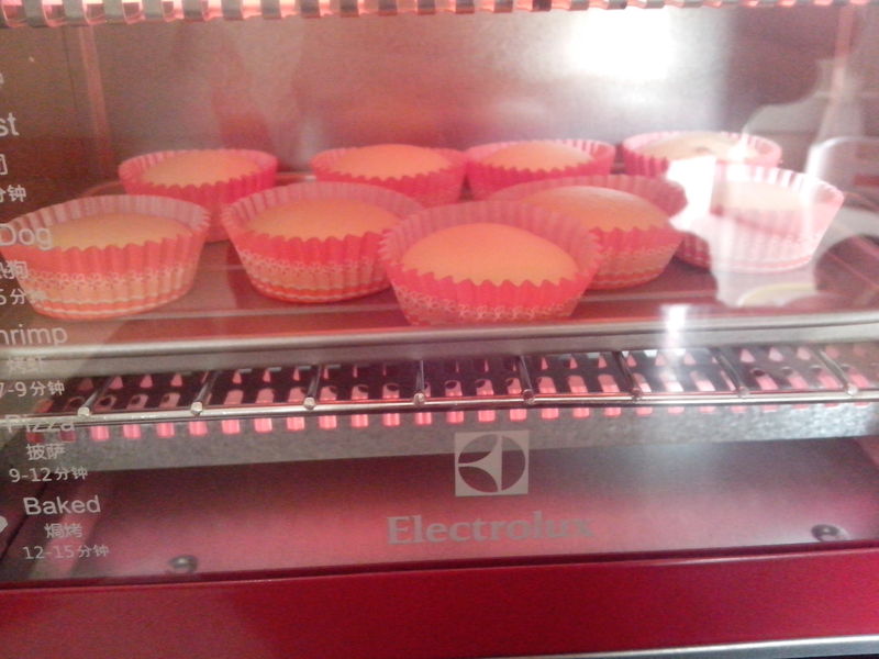4:蛋黄加入橙汁,油,面粉拌匀 5:将蛋白糊和蛋黄糊分两次拌匀 6:.将拌好的面糊倒入纸杯中 7装好面糊的纸杯放入烤箱,(7.放入预热150度的烤箱中烤30分钟)