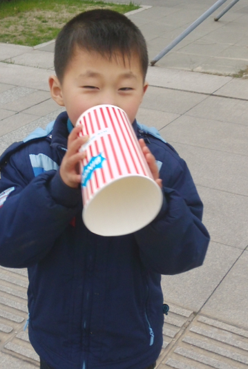 好玩的爆米花桶 周末带着点点一起喝希宝妹妹去看电影了,我们看得是火鸡总动员的电影,看电影的时候阿姨给点点买了一桶爆米花,点点一边看电影一边吃爆米花还是很悠闲的,妹妹咳嗽呢,就没有怎么吃爆米花,点点吃了不少,我也不要点点吃太多爆米花,含铅量重,后来爆米花就给妈妈吃完了,吃完爆米花以后,看完电影我要扔掉爆米花桶桶,点点不愿意,他还要玩呢。 看完电影我们就去图书馆看书了,在图书馆的门口,点点拿着爆米花的桶桶玩得不亦乐乎,一个桶桶就在点点的手里玩得很溜,想法很多,创意也很多,玩得很开心,一边走路一边玩,都没有感觉走路走了很远了。