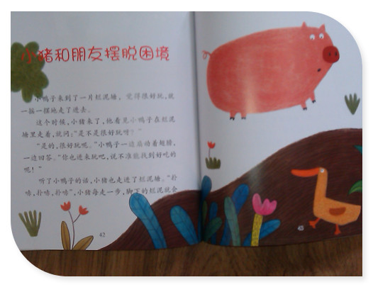 阅读日期: 2014年3月29日 参与人员:妈妈和宝宝 阅读绘本:《小猪和朋友摆脱困境》 绘本特色:谭旭东纯美亲子阅读系列,烂泥塘里玩的危险,让孩子玩耍中要注意安全 适读年龄:适合3-6岁 阅读心得 《小猪和朋友摆脱困境》是谭旭东纯美亲子阅读系列中的一个故事。这个故事挺有意思的,插图中的小男孩造型怪怪的,看起来都像个古人的感觉,一点小男孩的可爱都没有呢!故事中主要让孩子感受到安全的重要性,玩耍中也要主意安全,烂泥塘是不能进去玩的,看黄牛和小猪的结果就知道了,而且遇到危险的时候一定要冷静,有人相助的时候也要聪明的配合,这样才能顺利被救。