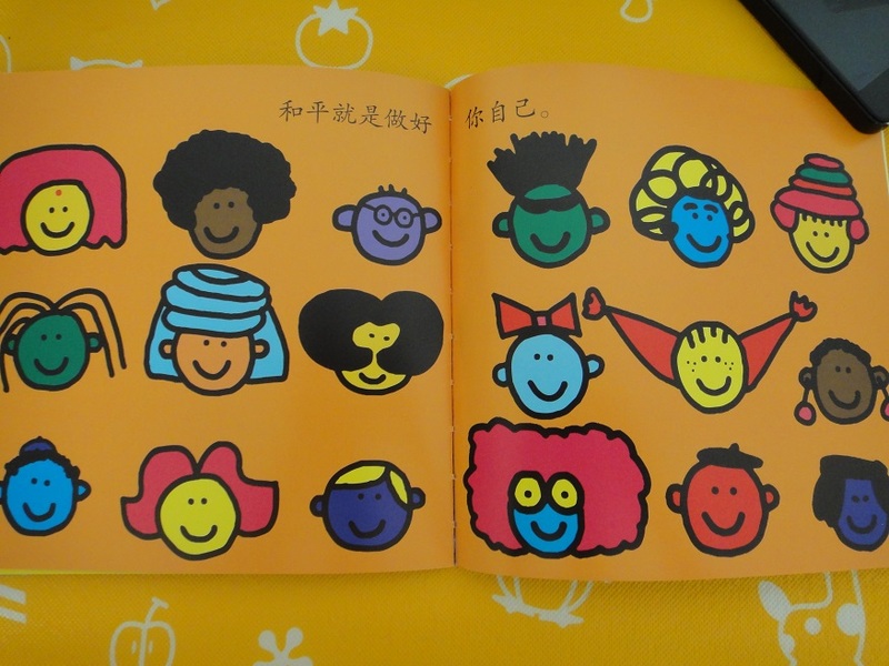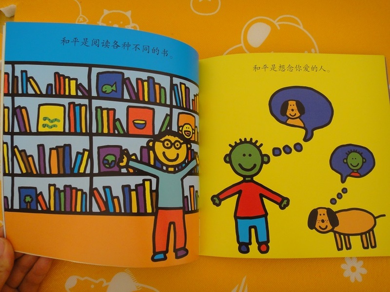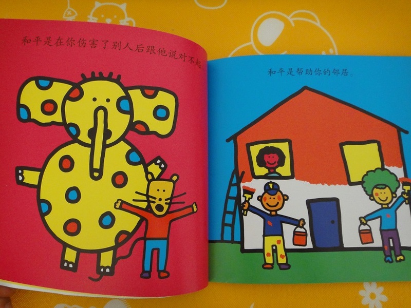 ![]() 这本《和平》是前几天参加分享中的,那天真的没想到会有我,算是一个意外惊喜吧,因为我看好多妈妈分享都非常好,在这里要感谢宝宝地带,感谢二十一世纪出版社还要感谢那天分享的那位老师!谢谢! ![]() 首先从封面说起,底是蓝色的,和平那个字是黄色的,都是非常鲜艳的色彩,是我家大卫喜欢的颜色,上面的图案更是好看的不得了,九个头像,不同年龄,不同肤色,不同民族,不同性别。大卫最最喜欢的就是那个头上蝴蝶结的小朋友,说他非常特别,有意思,为什么会没有头发呢?看来大卫对他还 很关心的。其实生活中有许多小朋友是和我们不一样的,我们也有一些是和别的小朋友不一样的,这个要慢的引导他,让他先有一个了解,等大一些再加深一下印象。 ![]() 这书开业不算大,但是质量很不错。大卫还是第一次有这大小的绘本呢!印刷的色彩特别的鲜明,纸张油亮。而且不算薄的,每一页都有一个内容图案也是特别的美,真是丰富多彩。每页的内容简单平淡不失温文尔雅。其实和平这个语大卫之前好像都没有听到过,因为我们也没有给他讲过关于这方面的内容,希望通过读这绘本,能让大卫多少知道一些。 ![]() 和平对每个人来说都非常的重要,和平就是没有战争,人们可以生活的会更好一些,和平就是大家都不要打架,每个人都开开心心的过日子,和平对于我家大卫来说,就是在外面不要和小朋友们抢玩具,不要被别的小朋友打哭。和平就是大家在一起好好的玩。和平还可是和大家一起分享玩具,分享水果,和一些别的吃的,玩具。对于我们家来说,和平就是大卫好好吃饭,达不到要求时不要大哭。和平就是大卫不让我没事没事的就抱着他……太多内容了。呵呵 ![]() 和平就是要和别人不一样,对自己有信心,并且帮助别人,因为你,世界会美好!