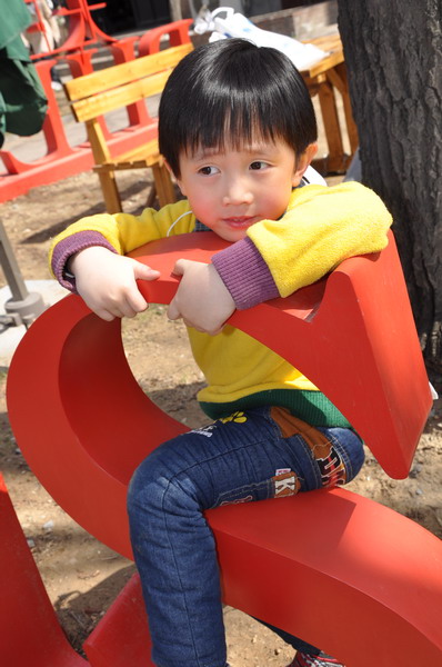 离开剧场多多在外面又玩了一会儿,男孩子真淘啊,看到别的小朋友在攀爬,毫不迟疑地加入了。