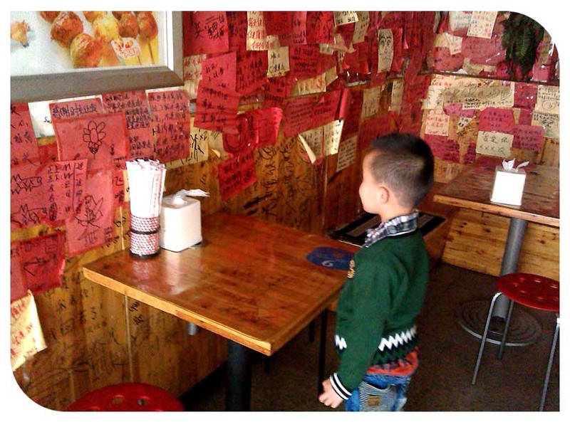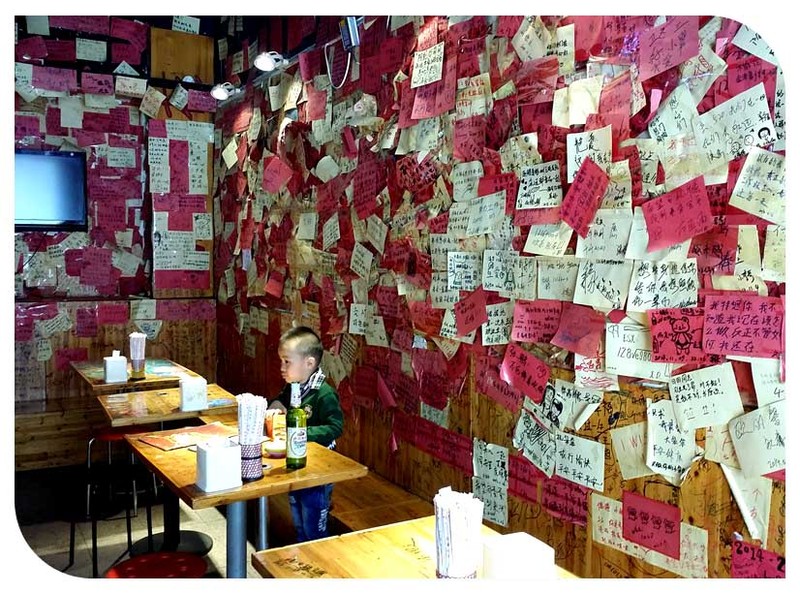 来到店内看看这满墙张贴的不同颜色的卡片纸就知道这家店吸引人的地方了吧,吃什么不重要,留下心情很特别。妈妈一眼就找到了老公当时留下的卡片,简单几句话却完全能让我感受到他的心思。谦也被这个店里的样子吸引了,很好奇的,也开始寻觅着自己感兴趣的内容,卡片上写的文字真是五花八门的,特别有意思,有的画也很特别,总之生活在这里浓缩......