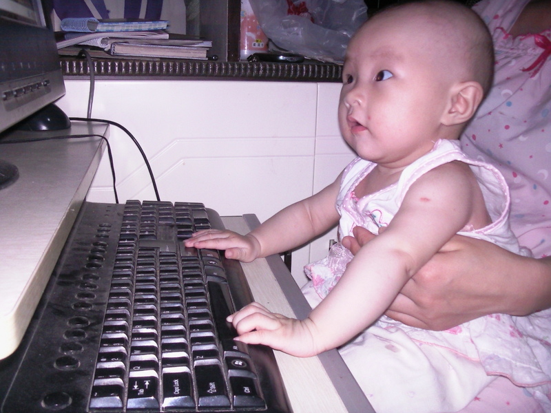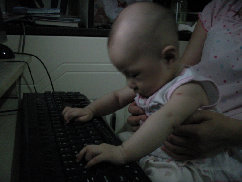 宝宝好可爱呀! 看到我在上网打字的时候她就要按过来玩我就给她玩 玩起很认真哦!给阿姨们看哈她可爱的照片哈! 美妈们宝宝看到自己玩电脑会不会来和妈妈一起玩呢?
