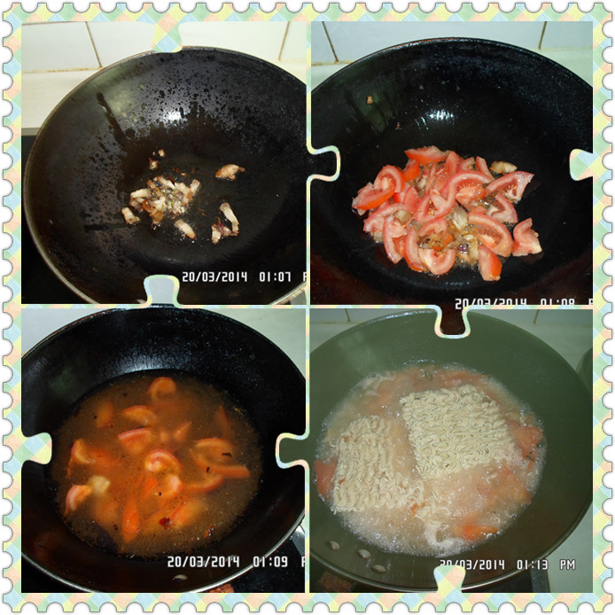 热锅加入适量的葱头爆香,加入西红柿炒一炒,这样西红柿的味道才会出来。加入适量的水,待水开后加入泡面。