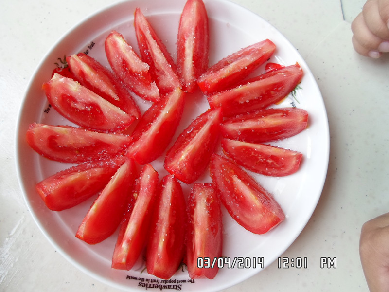 记得我们小的时候吃的西红柿特别的甜,都是自然红的。现在的西红柿好象不是在树上自然红的,看着表面上虽然红通通的,但是里面却非常的硬。切开的时候里面是生的,煮起来就是硬的,不会烂糊糊的。咬在嘴里是一点儿味道也没有,应有是用一种催化剂催熟的吧。现在技术发达了,什么东西都可造假了,我们吃的食物大都有催化剂了。