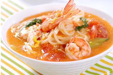 番茄在我们山东烟台用土话讲叫洋柿了,西红柿。是一种经济实惠,营养非富的蔬菜,因为可以生吃,所以有时也会当成水果。茶余饭后吃一个,开胃又爽口。据了解番茄是全世界栽培最为普遍的果菜之一。 找度娘查了一下,发现番茄除了营养丰富还有一定的食疗作用。所谓药食同源大概就是指的这个意思吧。说番茄味甘、酸,性凉,微寒。能清热止渴,养阴,凉血,归肝、胃、肺经。具有生津止渴,健胃消食,清热解毒,凉血平肝,补血养血和增进食欲的功效。可治口渴,食欲不振等。原来这不起眼的番茄还有这些功效,看来要多吃一些了。 去年公公自己种了些蔬菜,其中就中番茄。不仅孩子爱吃,我家大人也有喜欢。自己家种的不用化肥农药,味道特别正。甘甜,汁水很多,不是外面卖的可以比的。 我家小丫头最喜欢吃的就是西红柿,生吃,煮西红柿面,西红柿炒蛋都是大爱。其中最最喜欢的就是番茄鸡蛋虾仁面了。其实说起来做法也很简单 做法: 1、新鲜猪骨(选的蔗渣骨那几段)做的高汤(下班后买好,昨晚临睡前放入煲汤,煲一晚上,早上滤去汤表面的油,用盒装好,够宝贝一天煮东西用了)。 2、锅内放水,旺火煮开,将新鲜虾仁加两片生姜放入锅内,开水滚烫后剥去虾壳,虾仁拍碎切细末; 3、西红柿去皮,选一半切成碎块。 4、鸡蛋打入碗内,用筷子打散备用; 5、锅内放水,待水烧开加入适量面条,略煮一会,面条软熟后捞出,水倒掉。高汤放入锅内煮开,将西红柿、碎虾仁、生姜片放入锅开,略煮一会,再将开水烫过的面条加入,煮开后小火煨5分钟左右。再将鸡蛋打匀倒在面条上,再烧至凝结成块后,加一点点盐调味。盛入碗内即成。 功效:富含蛋白质和钙质,增强脑细胞活动,健康益智。