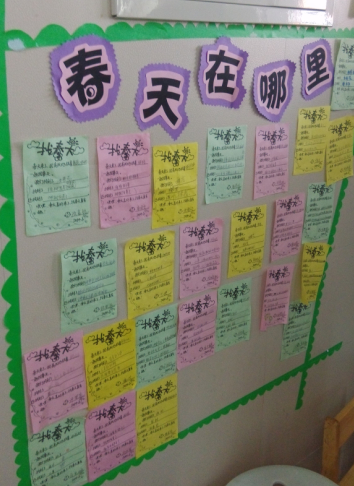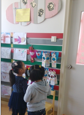 教室内也有很多活动区域,尤其是小朋友们的展示区很不错,有画画的展示区,小朋友们画的画都展示在墙壁上面,还有手工作品区,还有小朋友们在家做的小调查,还有玩的雪花片,积木的展示区。每一份作业,每一个作品都充满了孩子们的乐趣,充满了童真,希望小朋友们在这样温馨的班集体中快快乐乐每一天。